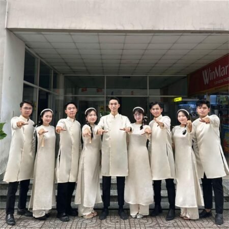 Trong khoảnh khắc trọng đại của ngày cưới, đội ngũ bưng quả không chỉ là những người đồng hành mà còn góp phần tạo nên vẻ đẹp tổng thể cho buổi lễ. Áo Dài Hồng Nơ Trơn Cổ Tròn là lựa chọn hoàn hảo, mang đến sự duyên dáng, tinh tế và đồng bộ cho đội hình. Với sắc hồng dịu dàng kết hợp nơ trơn thanh lịch, mẫu áo dài này không chỉ tôn lên vẻ đẹp tự nhiên mà còn tạo điểm nhấn ngọt ngào, phù hợp với không khí hân hoan của lễ cưới. Chúng tôi cung cấp dịch vụ thuê áo dài và phụ kiện đa dạng, đảm bảo chất lượng từ chất liệu đến đường may, giúp quý khách dễ dàng tìm được trang phục ưng ý nhất cho sự kiện của mình.