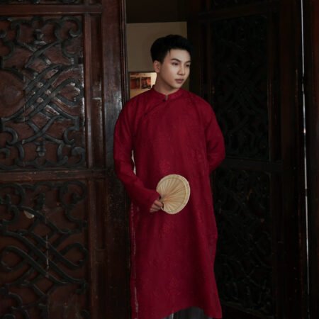 Cho Thuê Áo Dài Nam Đỏ Cành Đào Jacob Studio