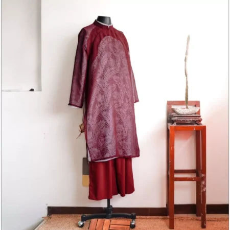 Cho Thuê Áo Dài Nam Tơ Đỏ Ca Dao Voan 2 Lớp Magnus