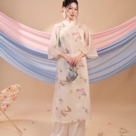 Áo Dài Kem Cổ Trụ Thêu Hoa Cúc là biểu tượng của sự thanh lịch, tinh khôi, mang đậm dấu ấn văn hóa Việt. Thiết kế cổ trụ kín đáo kết hợp cùng sắc kem nhẹ nhàng, trang nhã tạo nên một tổng thể hài hòa, tôn lên vẻ đẹp dịu dàng của người phụ nữ. Điểm nhấn đặc biệt nằm ở họa tiết hoa cúc được thêu tay hoặc thêu máy tinh xảo, ẩn chứa ý nghĩa về sự trường tồn, thịnh vượng. Chiếc áo dài này là lựa chọn lý tưởng cho các dịp đặc biệt như lễ hỏi, cưới, kỷ yếu, sự kiện văn hóa hay những buổi chụp hình nghệ thuật. Dịch vụ thuê áo dài của chúng tôi giúp bạn dễ dàng trải nghiệm vẻ đẹp này mà không cần đầu tư lớn, luôn đảm bảo áo được giặt ủi sạch sẽ, thơm tho và trong tình trạng tốt nhất. Đem lại sự tự tin và thoải mái tuyệt đối cho quý khách.