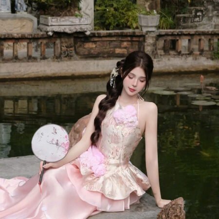 Áo Dài Cổ Tròn Đính Đá Tâm Giao Hồng mang vẻ đẹp thanh lịch và dịu dàng, nổi bật với gam màu hồng dịu mắt. Thiết kế cổ tròn tinh tế kết hợp cùng chi tiết đính đá tỉ mỉ tạo điểm nhấn sang trọng. Chất liệu mềm mại nhẹ nhàng, tôn lên nét duyên dáng của người mặc. Đây là lựa chọn lý tưởng cho những dịp lễ hội, sự kiện hay chụp ảnh kỷ niệm.