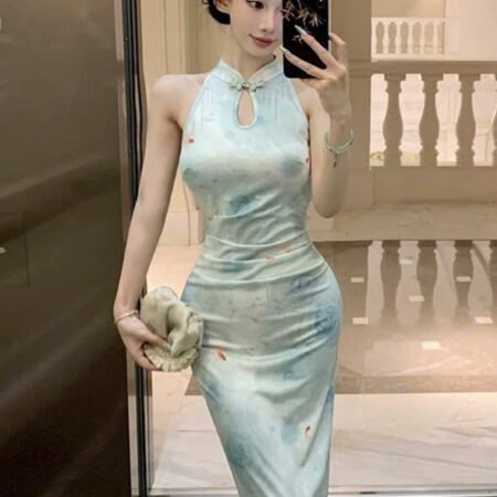 Sườn Xám Cá Chép Xanh là sự kết hợp tinh tế giữa nghệ thuật truyền thống và phong cách hiện đại. Họa tiết Cá Chép Xanh bơi lội trong làn nước mực loang tạo cảm giác thanh thoát, nhẹ nhàng. Phom dáng ôm sát tôn lên đường cong mềm mại, cổ áo cao và tay ngắn mang nét duyên dáng cổ điển. Đây là lựa chọn lý tưởng cho những ai yêu thích vẻ đẹp Á Đông đầy nghệ thuật và sâu sắc.
