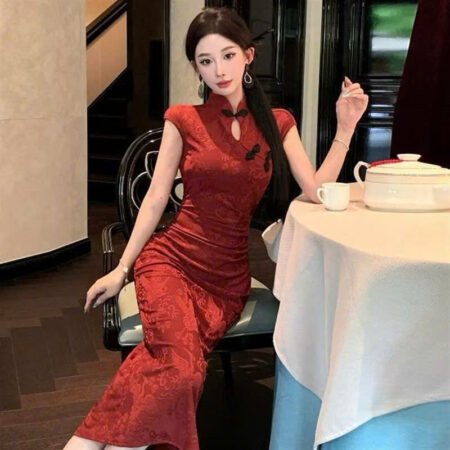Cho Thuê Sườn Xám Kim Sa 3 Nút Tàu Đỏ Liên hệ