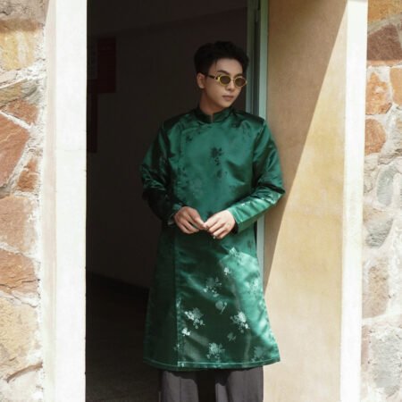 Cho Thuê Áo Dài Nam Xanh Lá Gấm Cúc Đại Đoá Jacob Studio