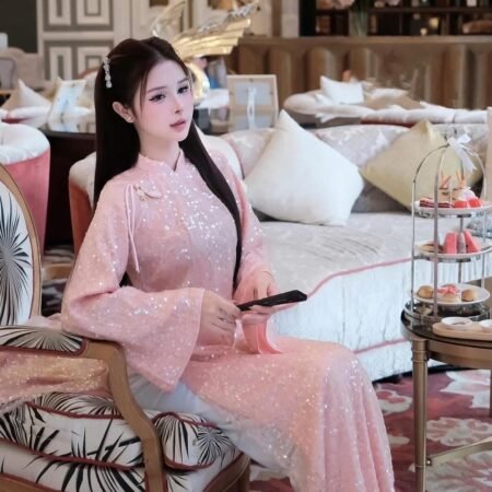Thuê Áo Dài Nữ Kim Sa Hồng Phấn (Có Bigsize)