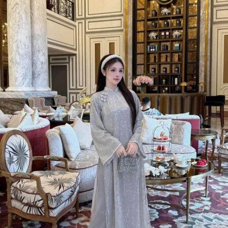 Thuê Áo Dài Nữ Kim Sa Xám Lấp Lánh