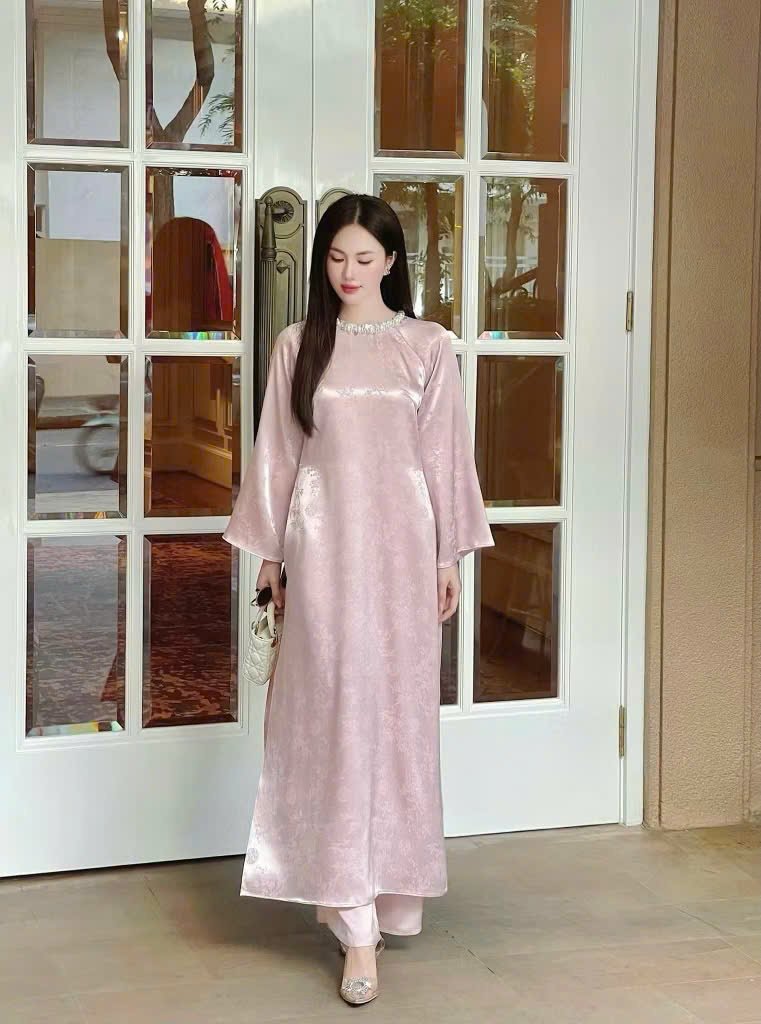 - Áo Dài Hoa Nổi Nhụy Vàng Hồng là một mẫu áo dài truyền thống đẹp và ấn tượng, được thiết kế với phần tà áo dài đến đầu gối, tay áo lửng và cổ trụ. Họa tiết hoa nổi nhụy vàng được đính trên nền vải màu hồng tạo nên sự tinh tế và nữ tính cho người mặc. Mẫu áo dài này phù hợp cho các cô nàng trẻ tuổi, có thể diện vào các dịp lễ tết, chụp ảnh kỷ yếu, tham dự tiệc cưới hay du xuân.