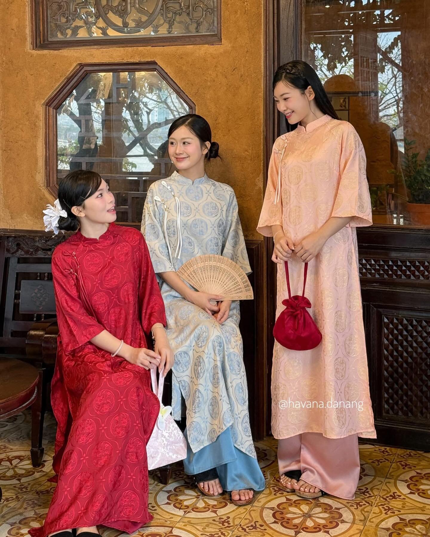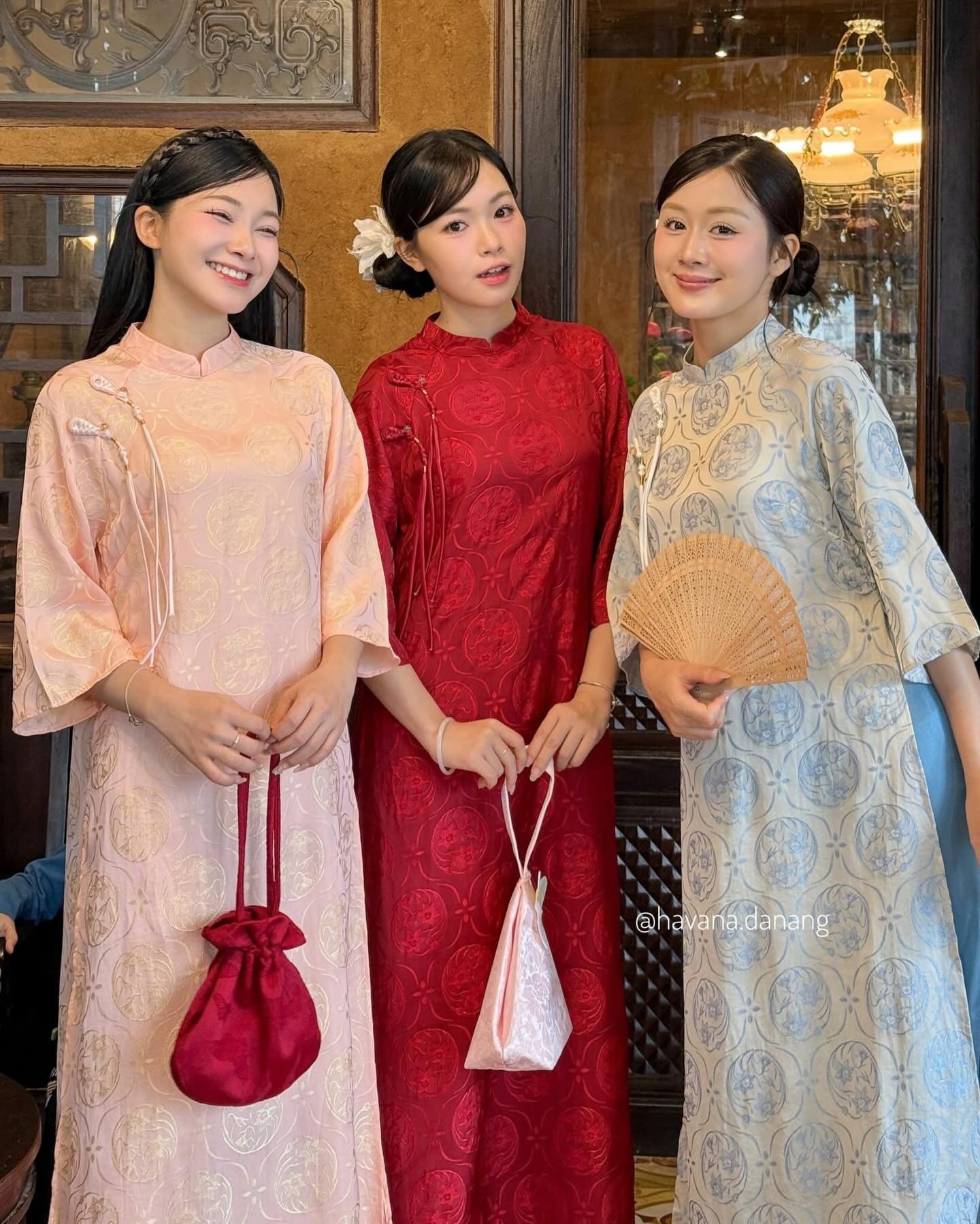 - Áo Dài Gấm Cổ Tròn Viền Ngọc Trai Đỏ là một kiểu áo dài được may bằng vải gấm đỏ thắm, có họa tiết gấm mang lại nét quý tộc truyền thống. Kiểu áo dài này có cổ tròn rộng, được đính kết những hạt ngọc trai trắng lấp lánh quanh viền cổ tạo điểm nhấn sang trọng và lộng lẫy. Áo Dài Gấm Cổ Tròn Viền Ngọc Trai Đỏ phù hợp cho các dịp lễ, tiệc, cưới hỏi hay chụp hình.