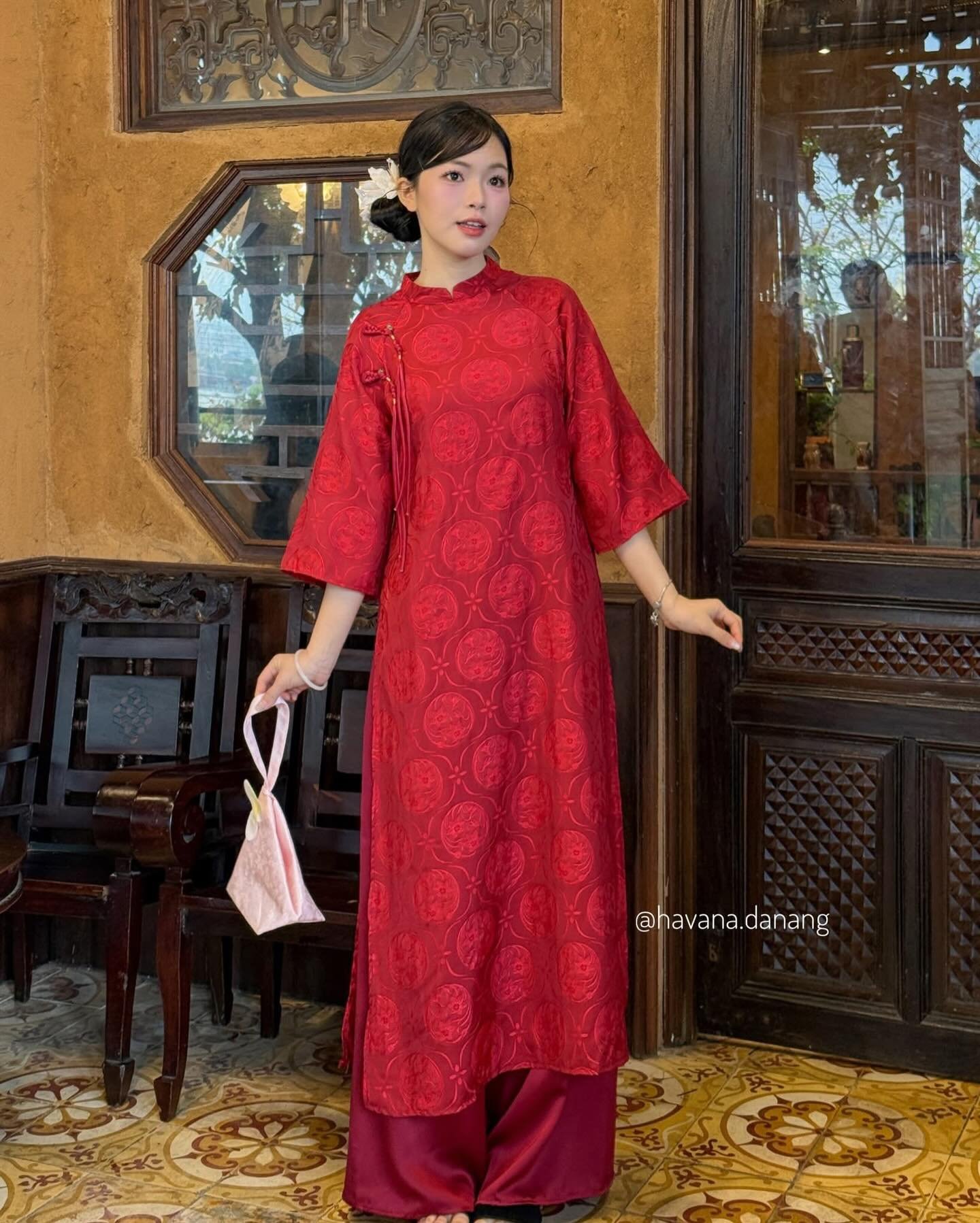 Cho Thuê Áo Dài Đỏ Tuệ Dĩnh 2 Nút Tua Rua (Có Bigsize)