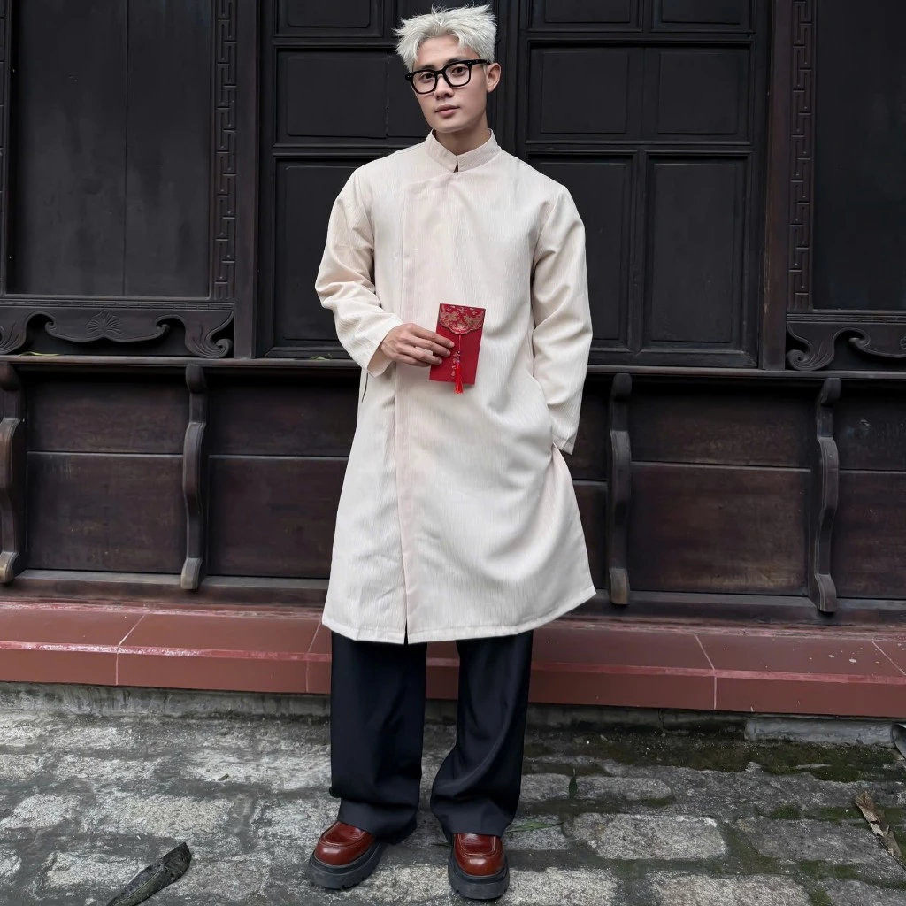 Áo Dài Kem Cúc Bấm GiDi mang phong cách thanh lịch, tinh tế và hiện đại, phù hợp cho lễ cưới, lễ ăn hỏi, Tết, sự kiện hoặc chụp ảnh kỷ niệm. Gam màu kem nhẹ nhàng giúp trang phục trở nên nhã nhặn, sang trọng và dễ phối với nhiều phụ kiện khác nhau.