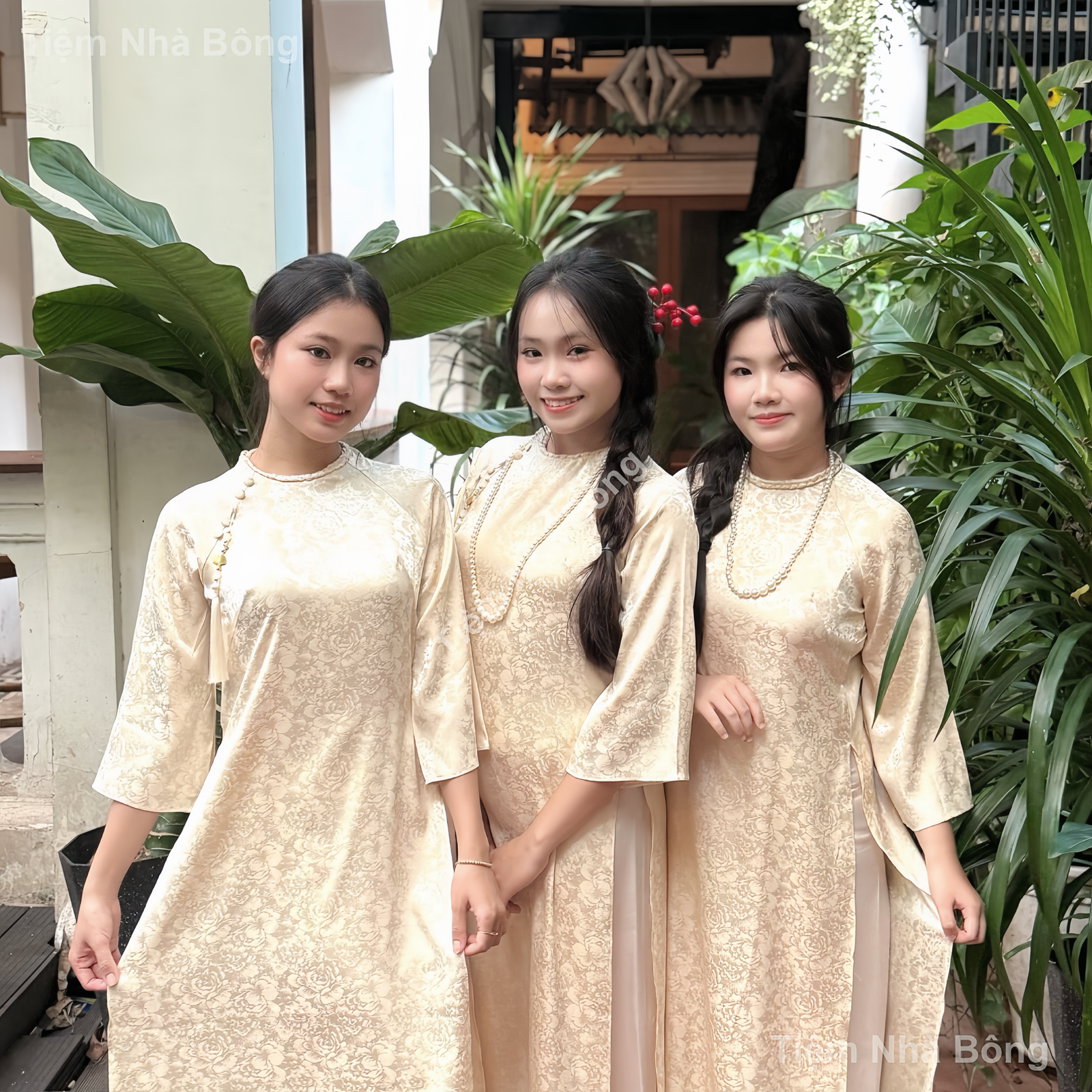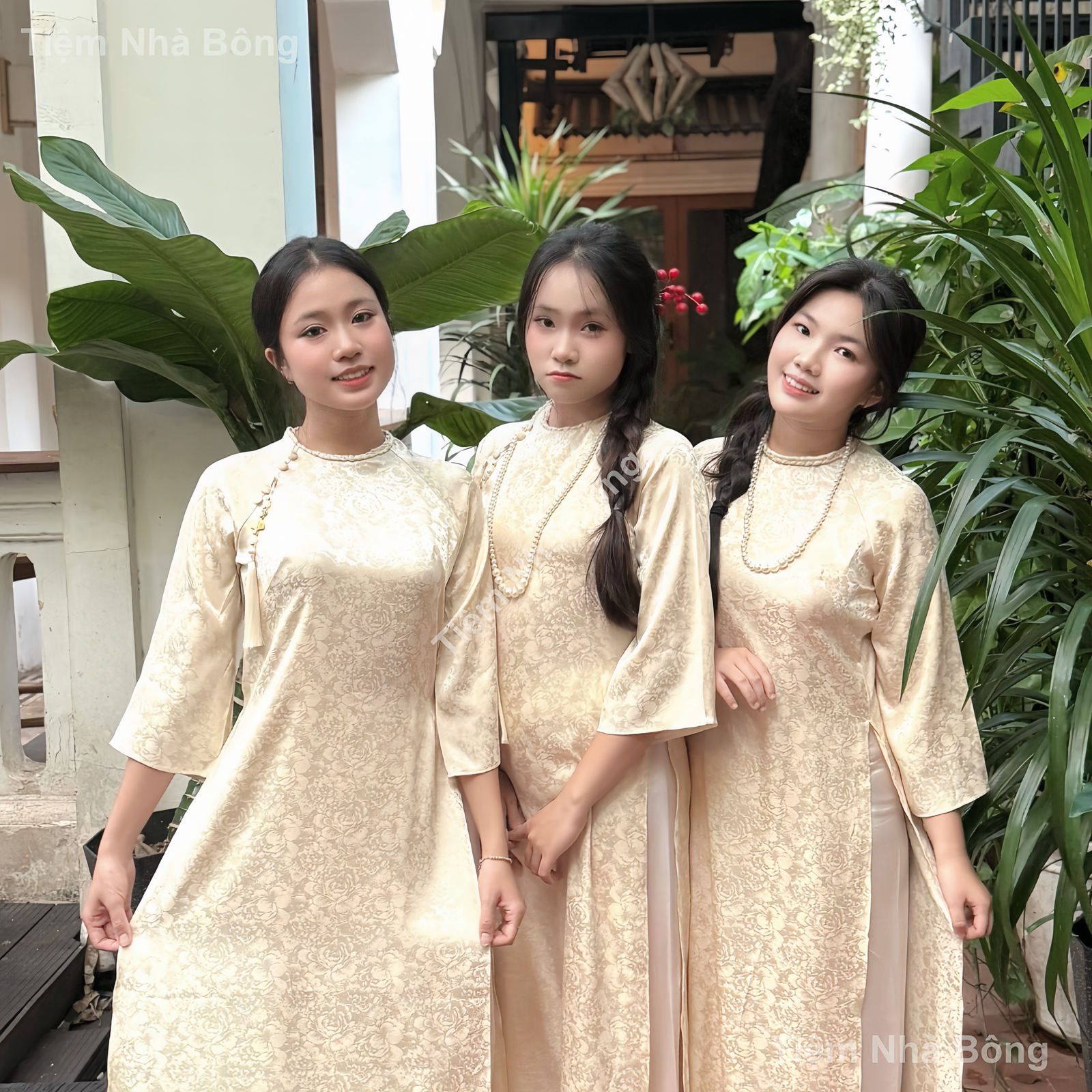 Trong các nghi thức quan trọng như lễ ăn hỏi, tiệc cưới, hình ảnh đội bưng quả trong tà áo dài truyền thống luôn mang ý nghĩa đặc biệt và tạo nên vẻ đẹp đồng điệu, trang nhã. Áo Dài Kem Hoa Nhỏ Viền Cổ của chúng tôi là lựa chọn hoàn hảo, kết hợp giữa nét cổ điển và hiện đại, mang đến sự duyên dáng và thanh lịch cho các cô gái trong đội hình. Với tông màu kem nhẹ nhàng cùng họa tiết hoa nhỏ tinh tế và điểm nhấn viền cổ duyên dáng, mẫu áo dài này không chỉ tôn vinh vẻ đẹp tự nhiên mà còn đảm bảo sự thoải mái, tự tin cho người mặc. Chúng tôi cung cấp dịch vụ thuê áo dài chuyên nghiệp, giúp bạn tiết kiệm chi phí mà vẫn sở hữu trang phục đẹp nhất cho sự kiện trọng đại, đi kèm nhiều phụ kiện để hoàn thiện vẻ ngoài.