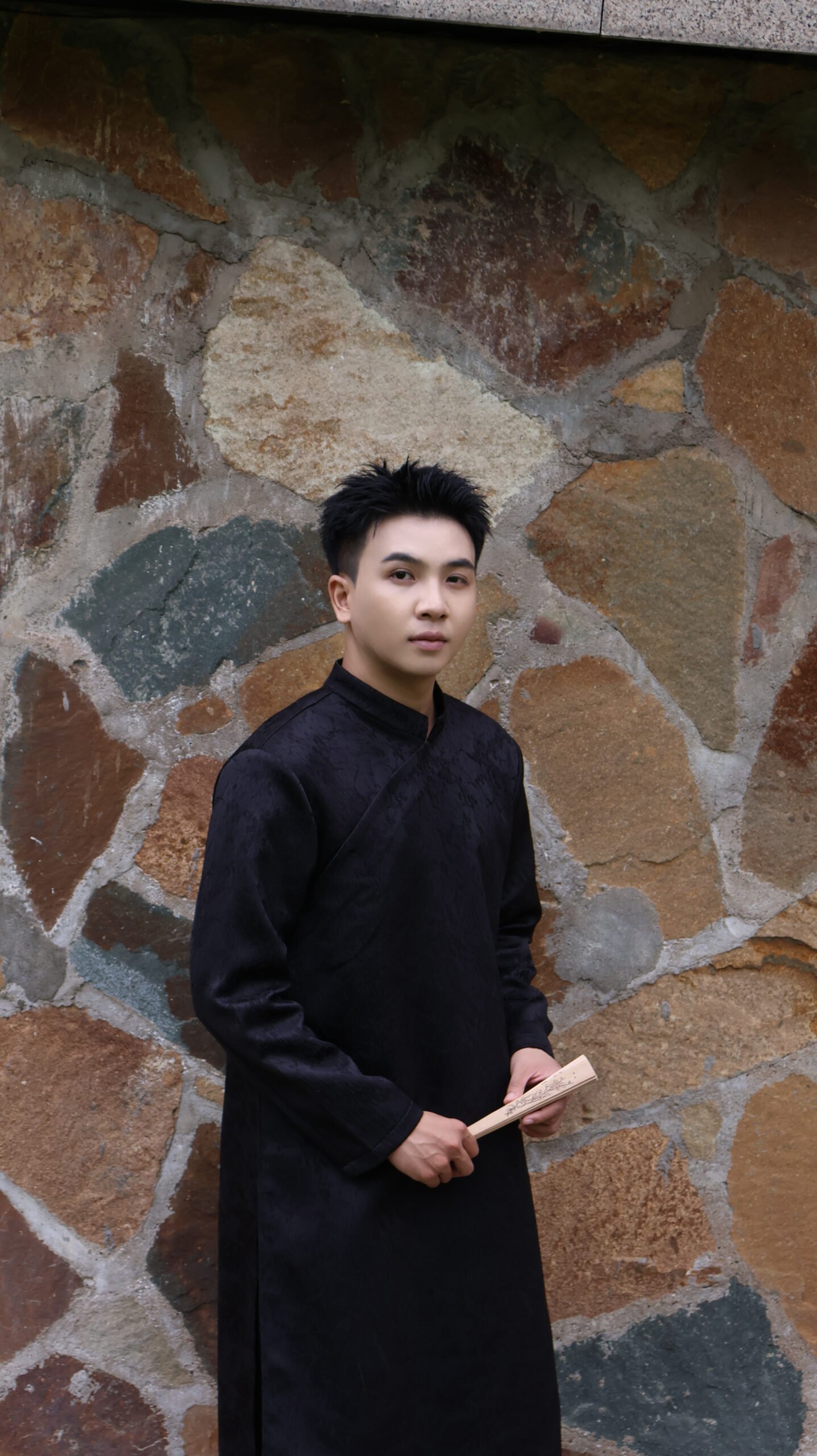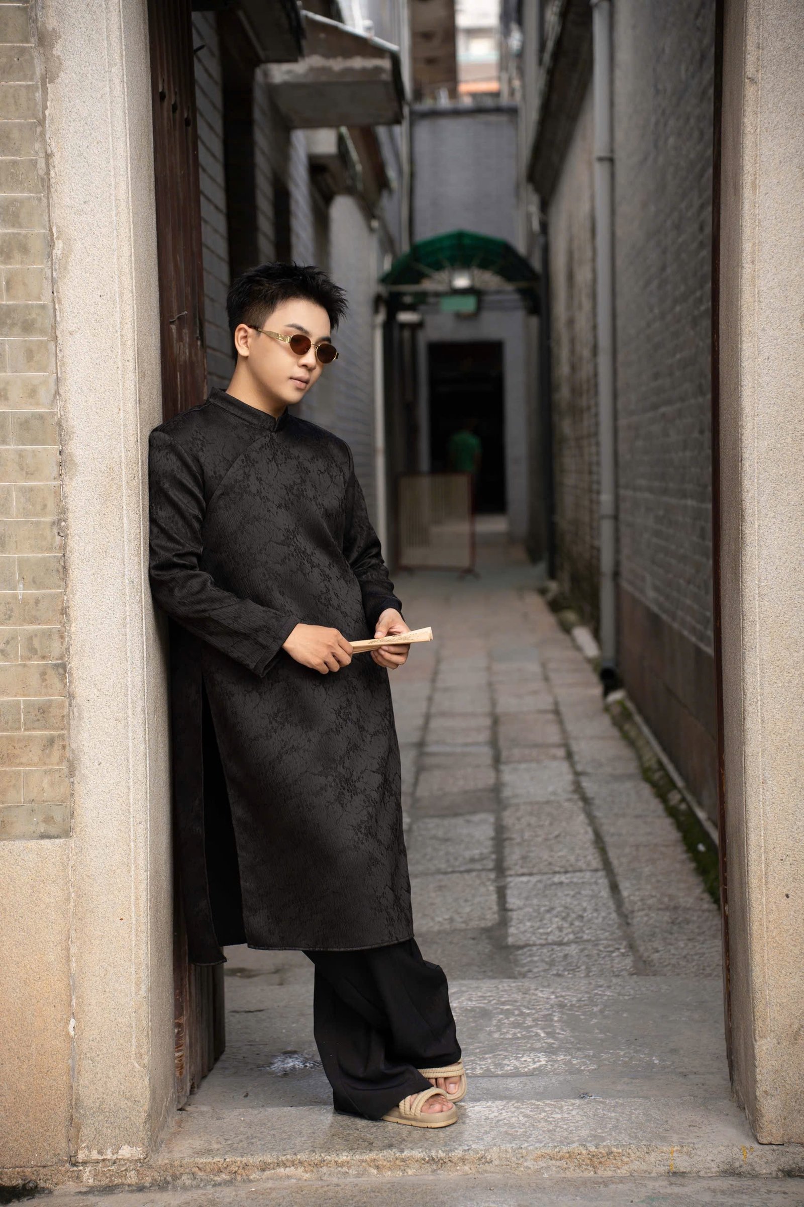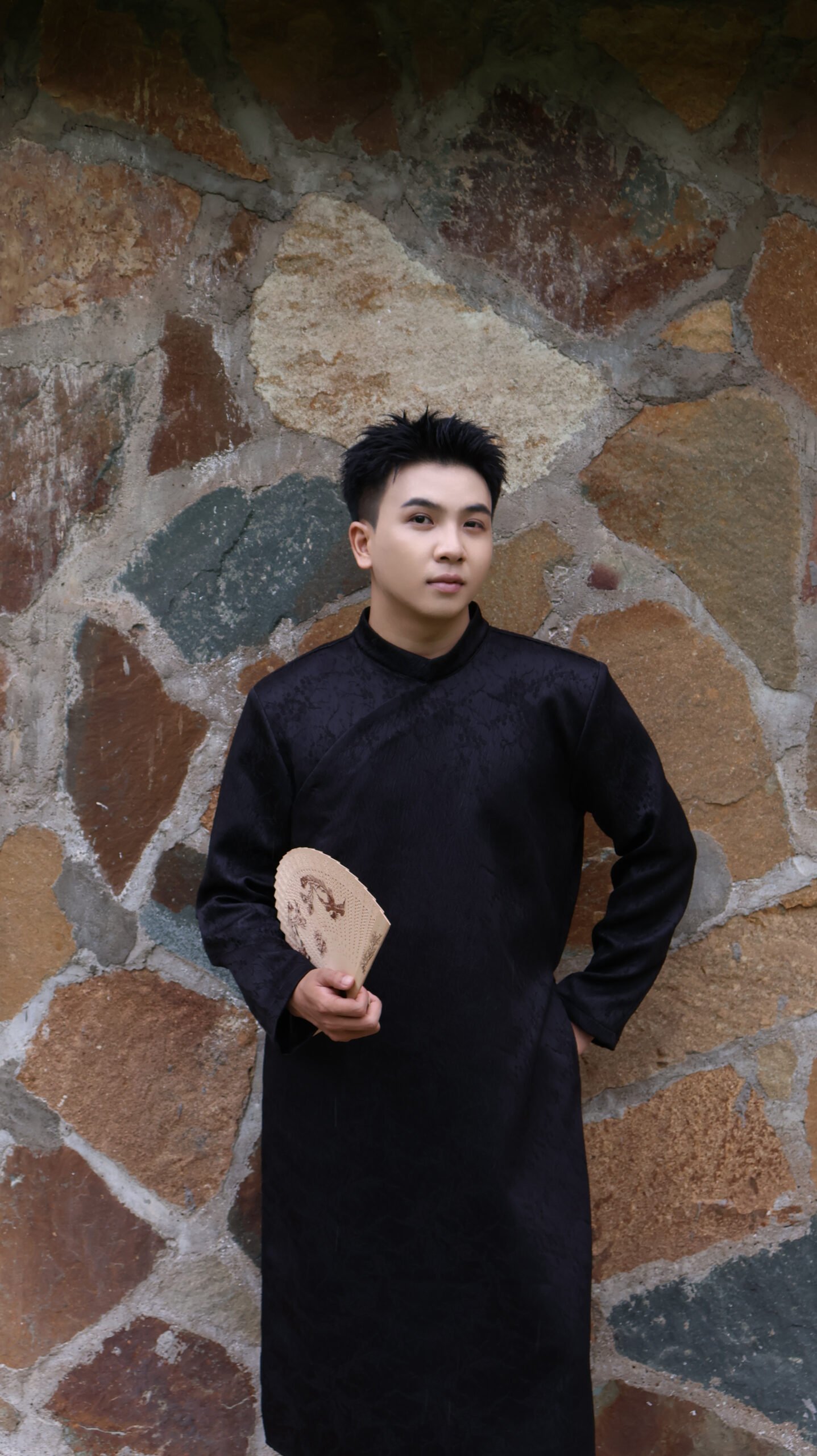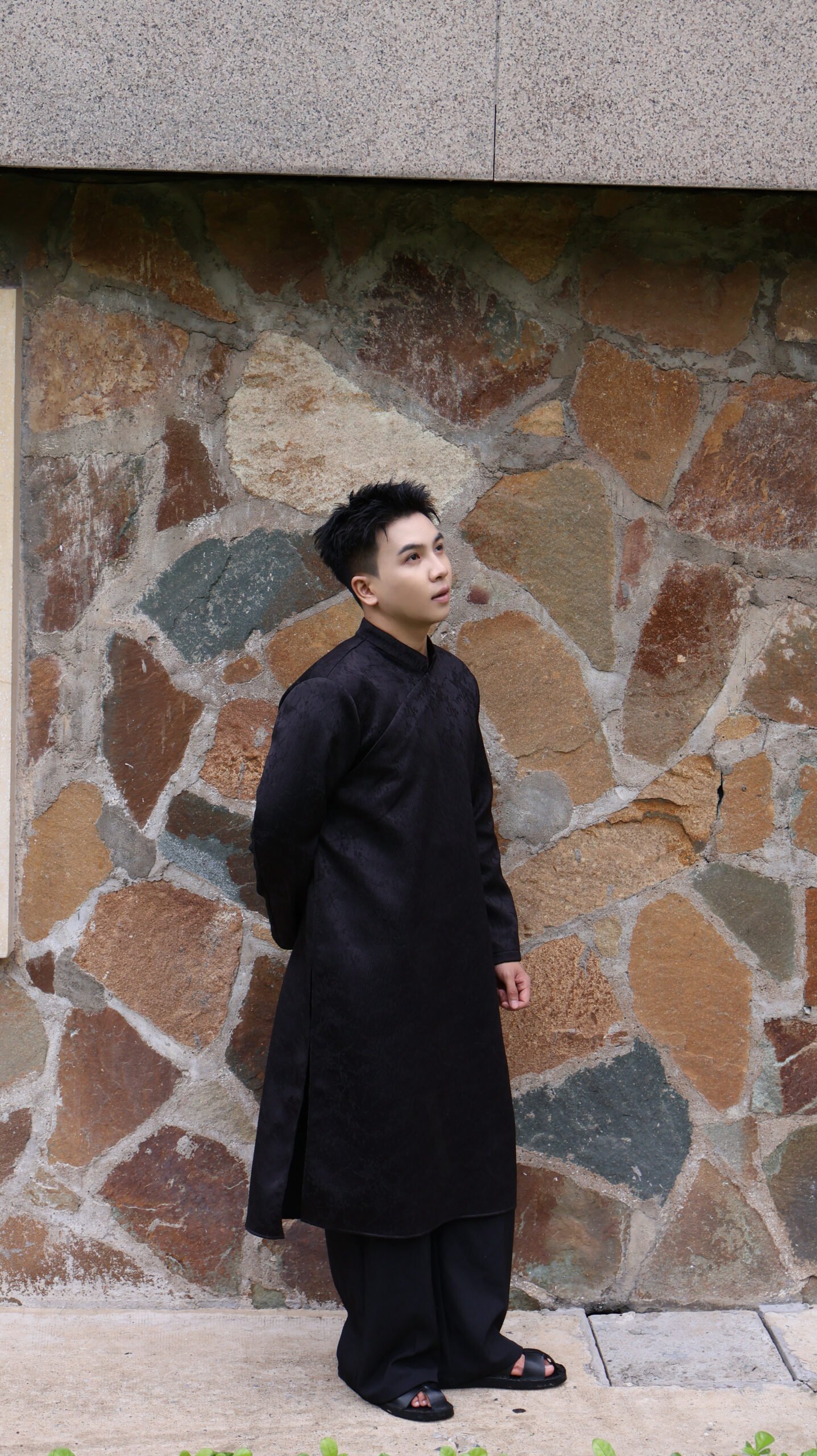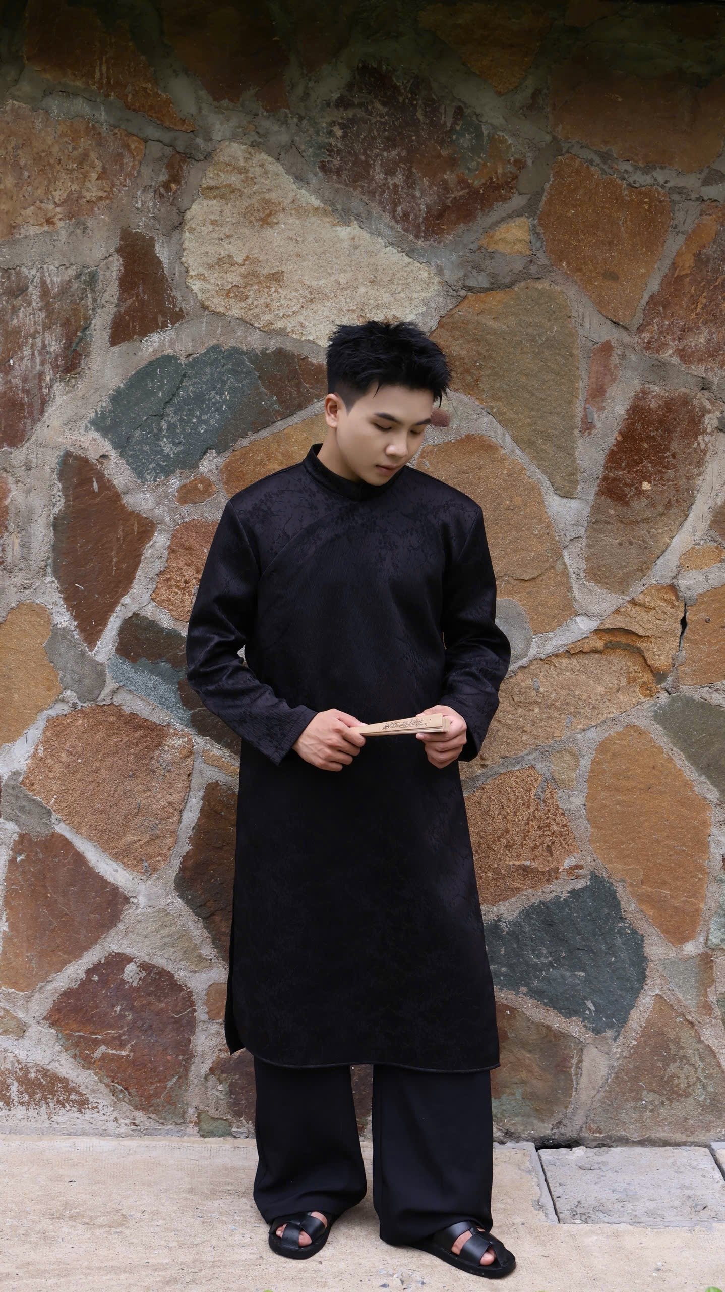 Cho Thuê Áo Dài Nam Đen Gấm Cành Đào Jacob Studio