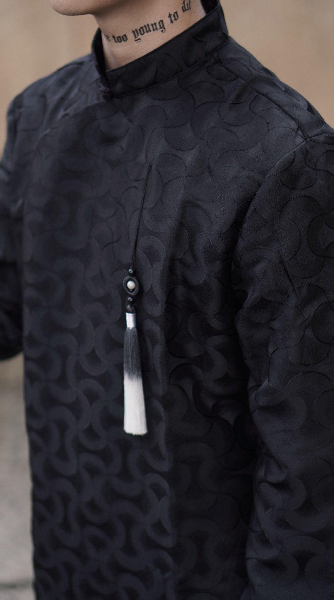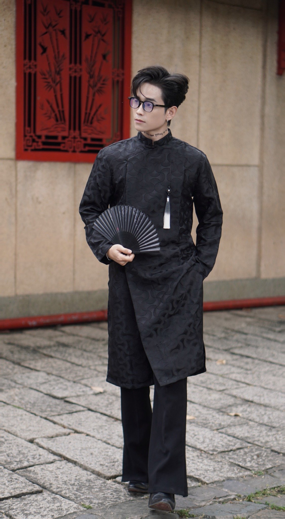 Cho Thuê Áo Dài Nam Đen Hoạ Tiết Gấm Sóng Silas Studio (Có Bigsize)
