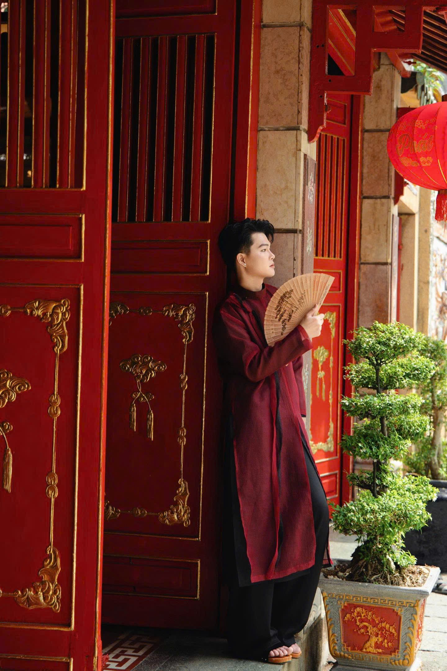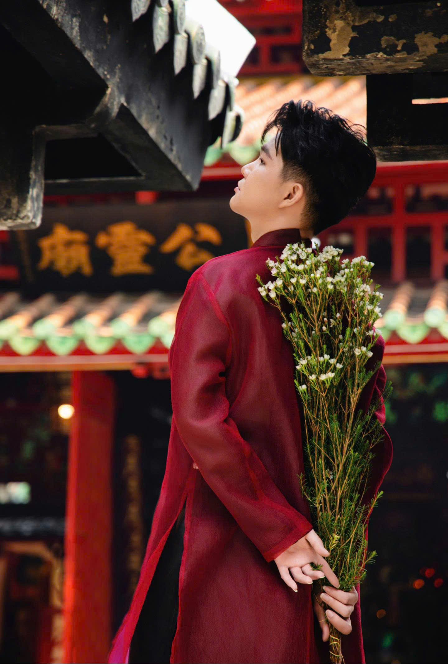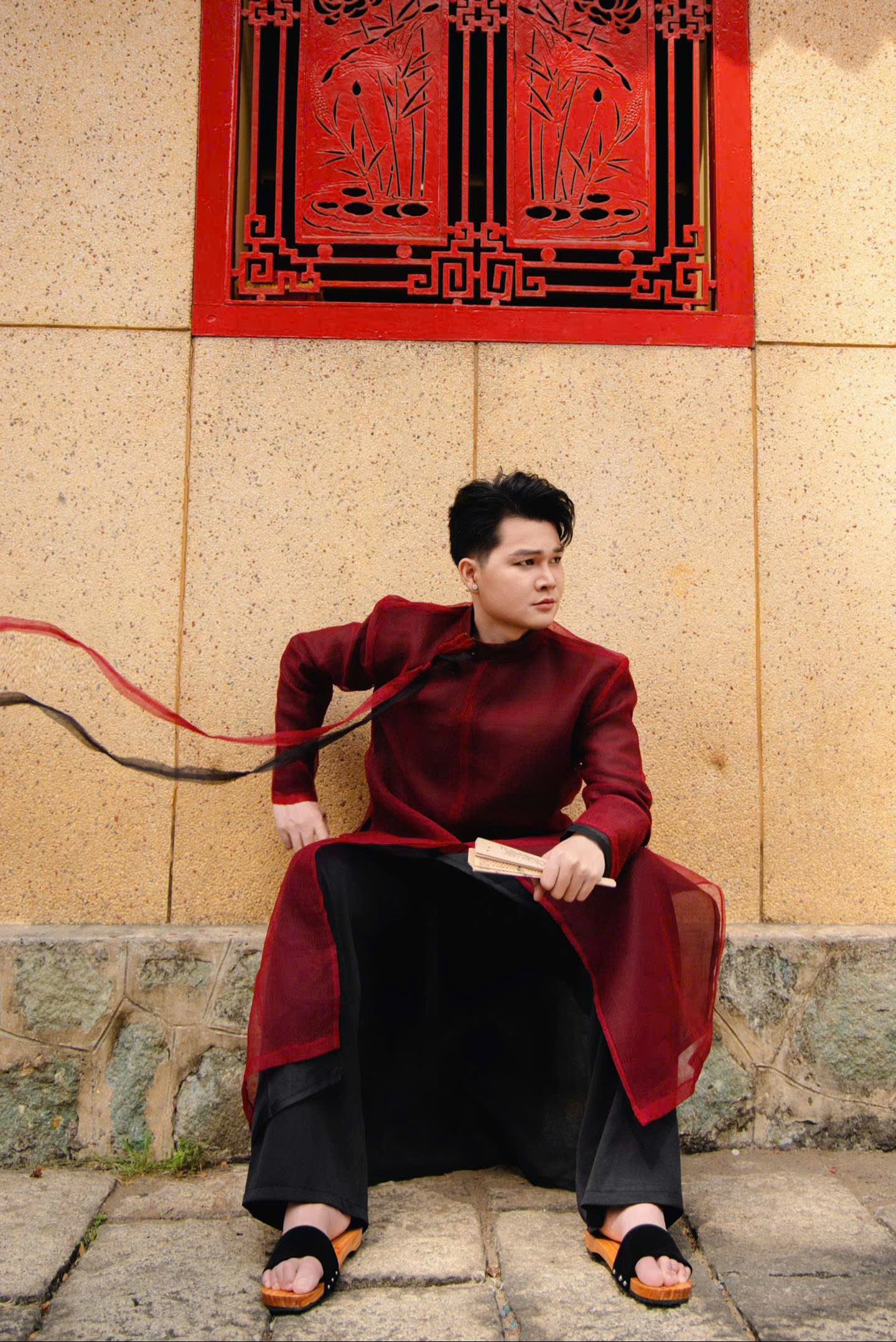 Cho Thuê Áo Dài Nam Đỏ Đen Magnus Voan 2 Lớp L