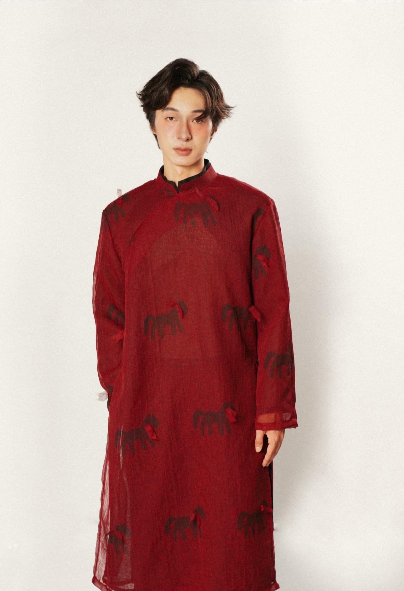 Cho Thuê Áo Dài Nam Đỏ Du Mã Tơ Mùng Magnus