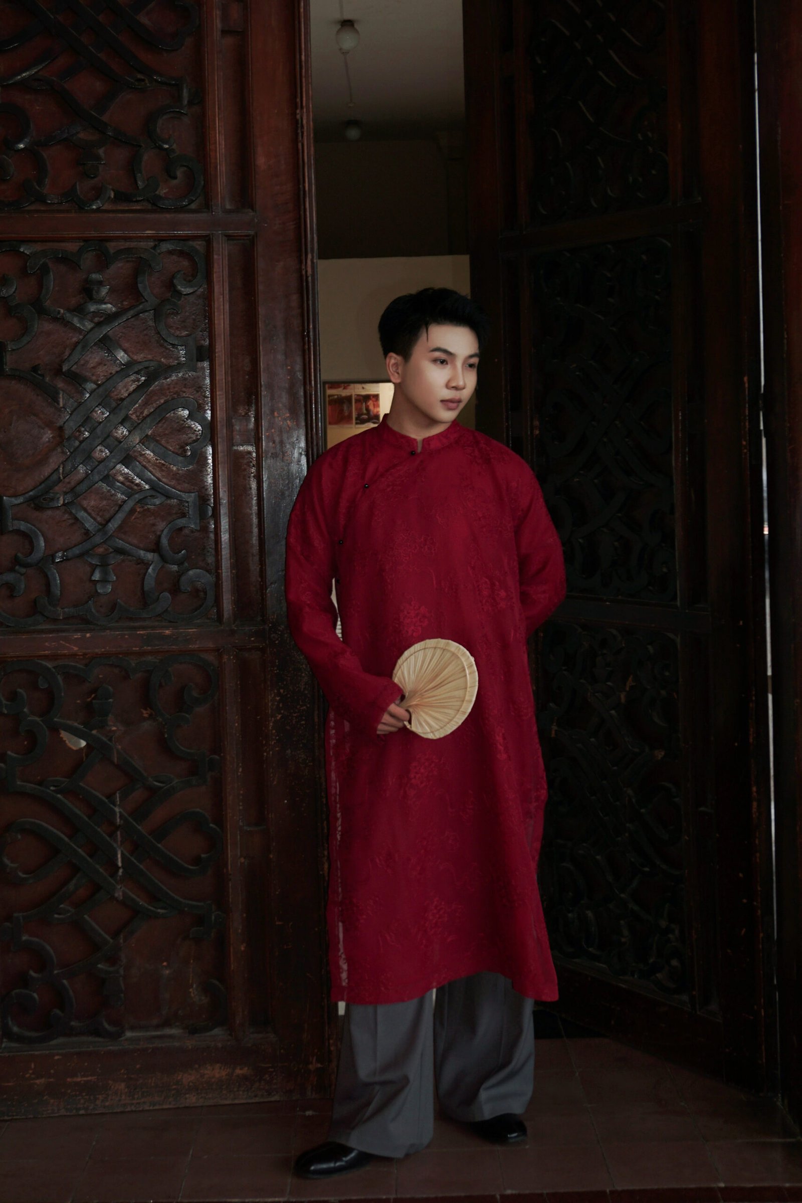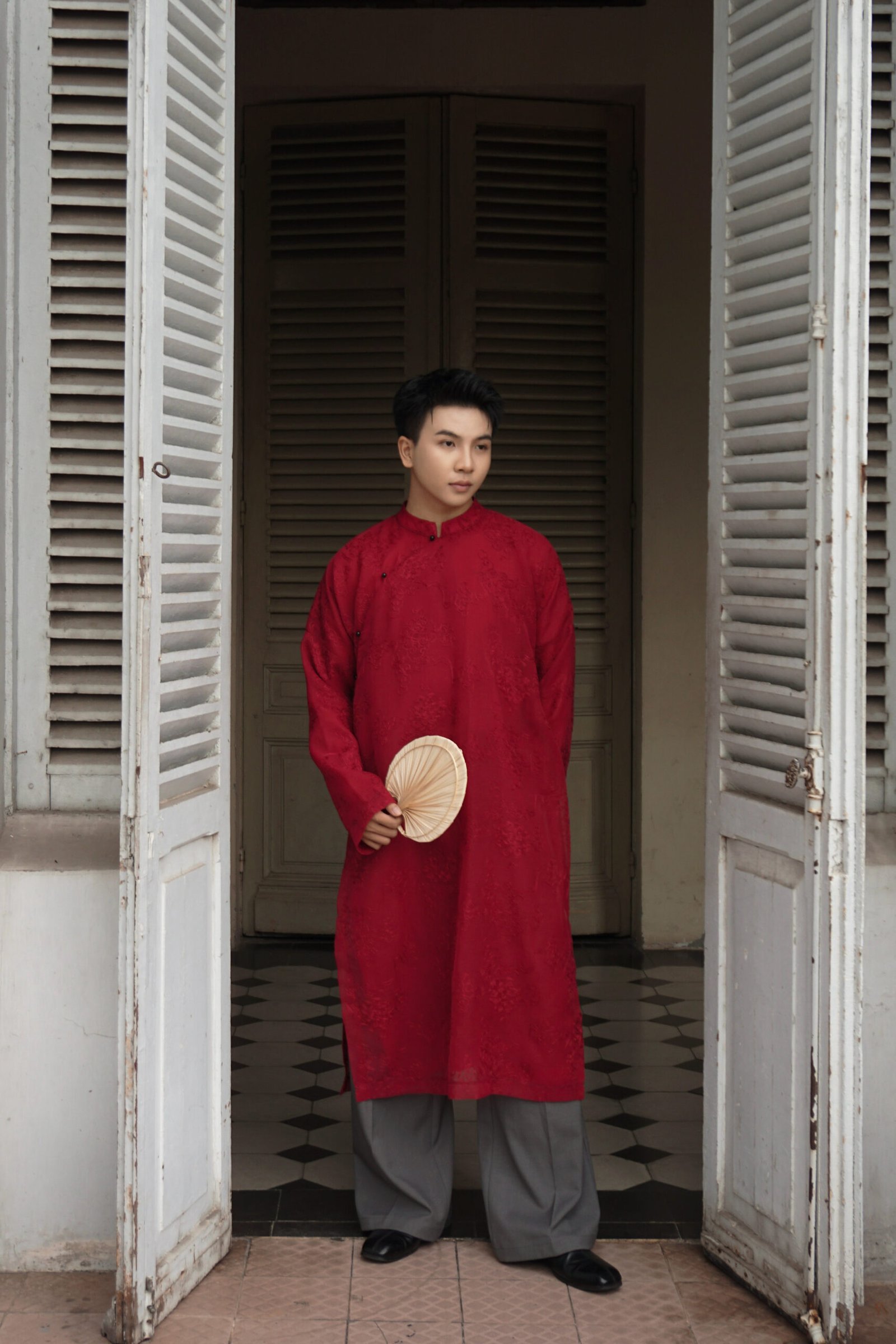 Cho Thuê Áo Dài Nam Đỏ Thêu Vân Mây 2 Lớp Jacob Studio