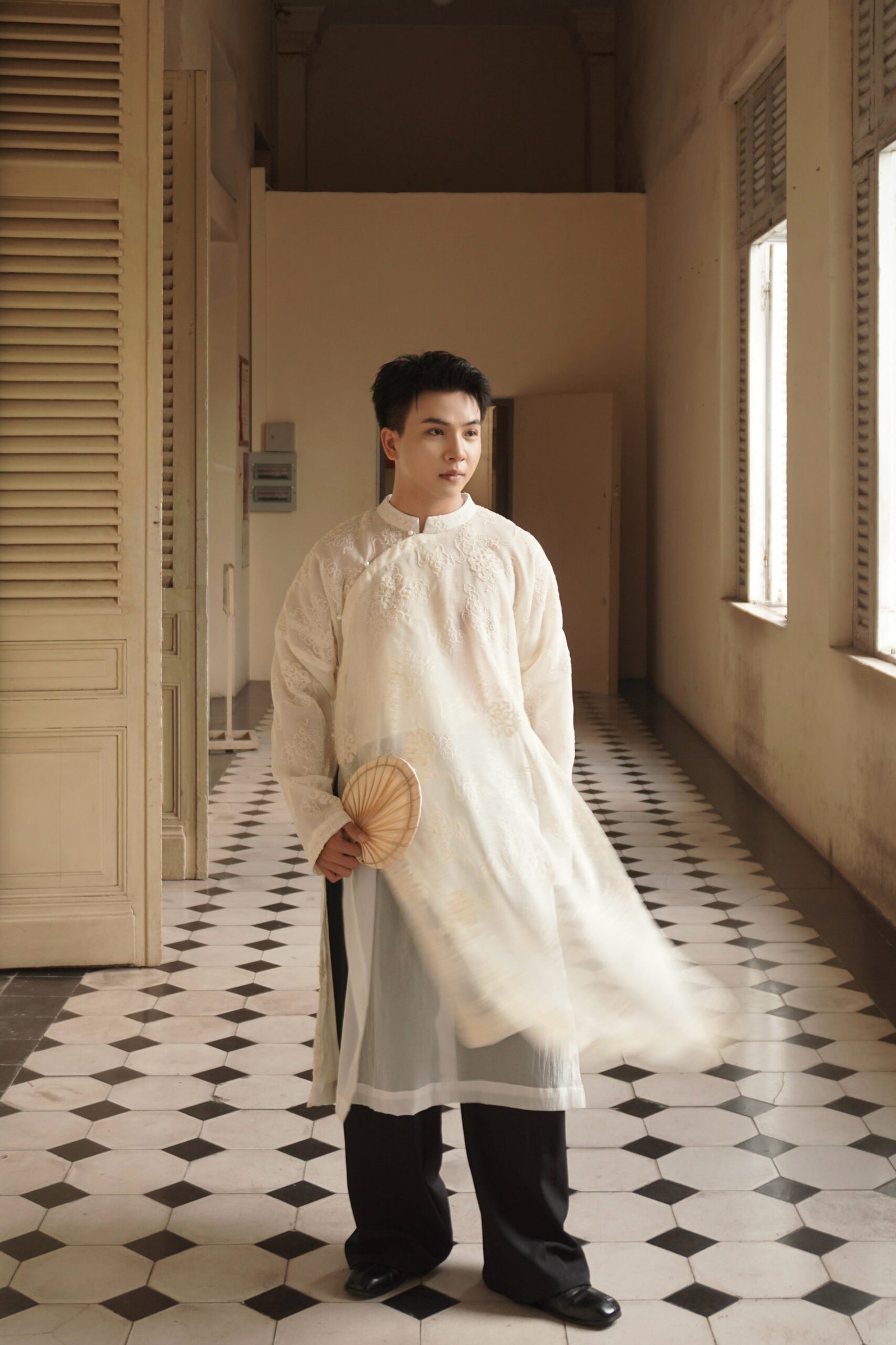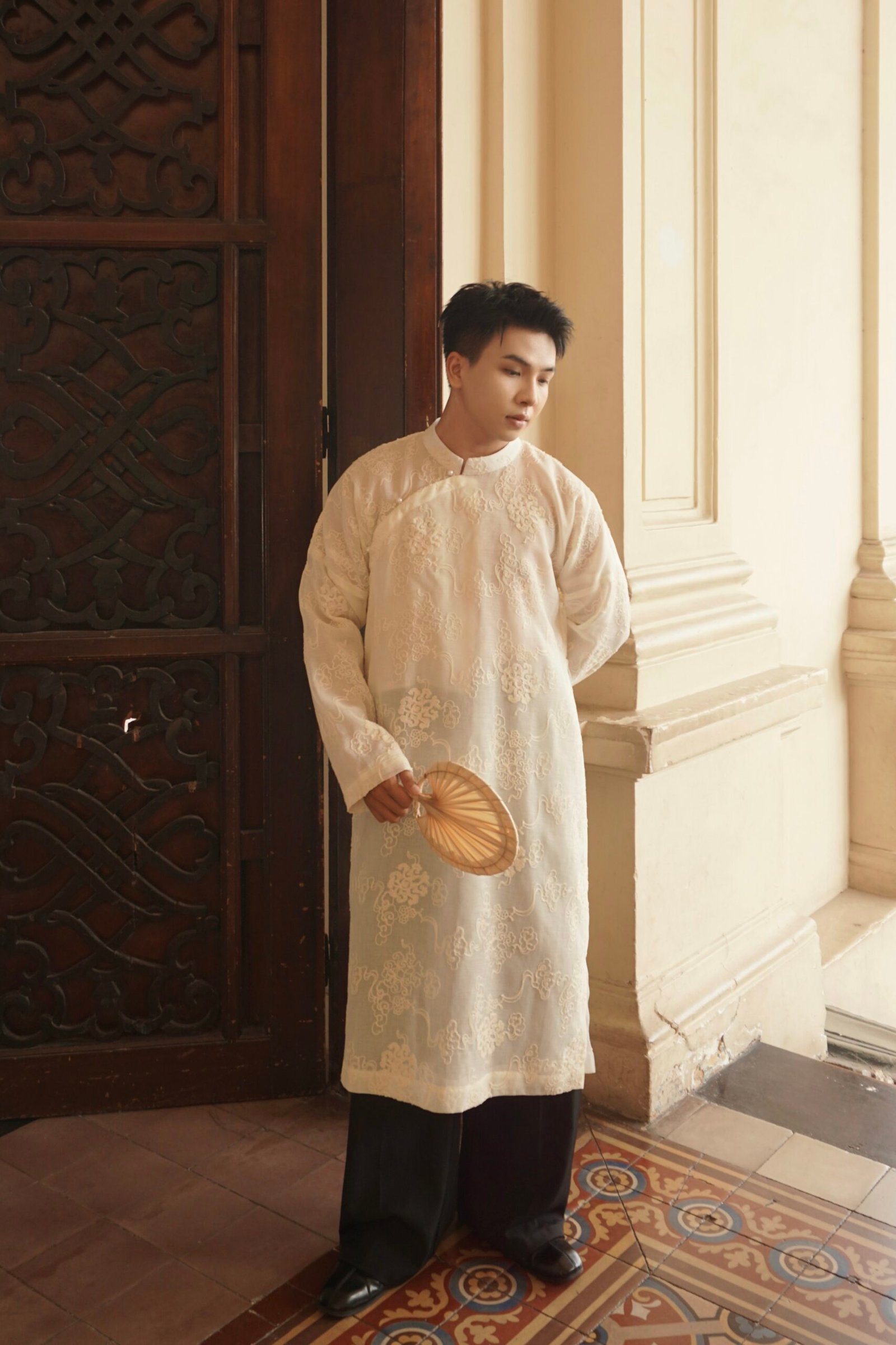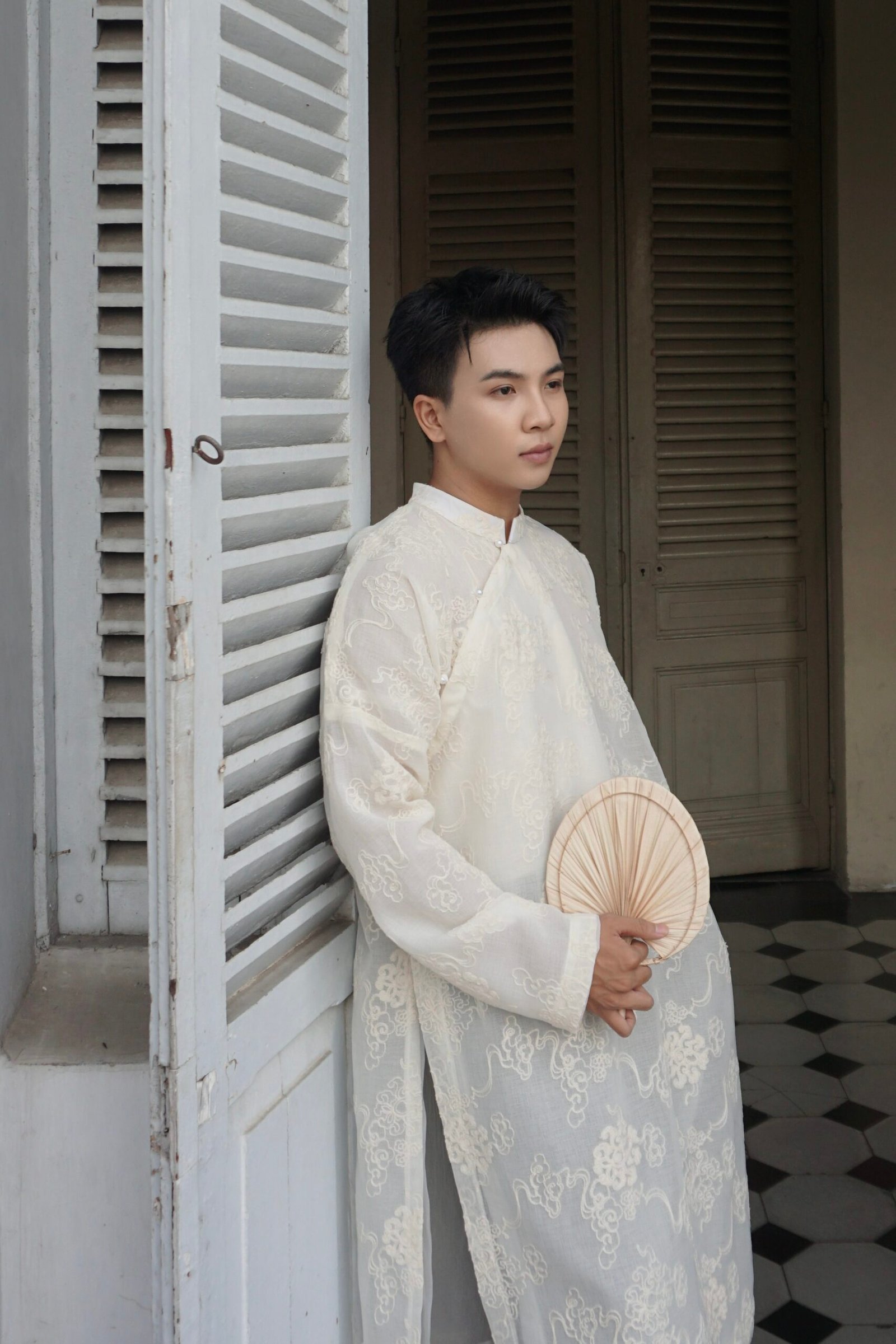 Cho Thuê Áo Dài Nam Kem Thêu Vân Mây 2 Lớp Jacob Studio