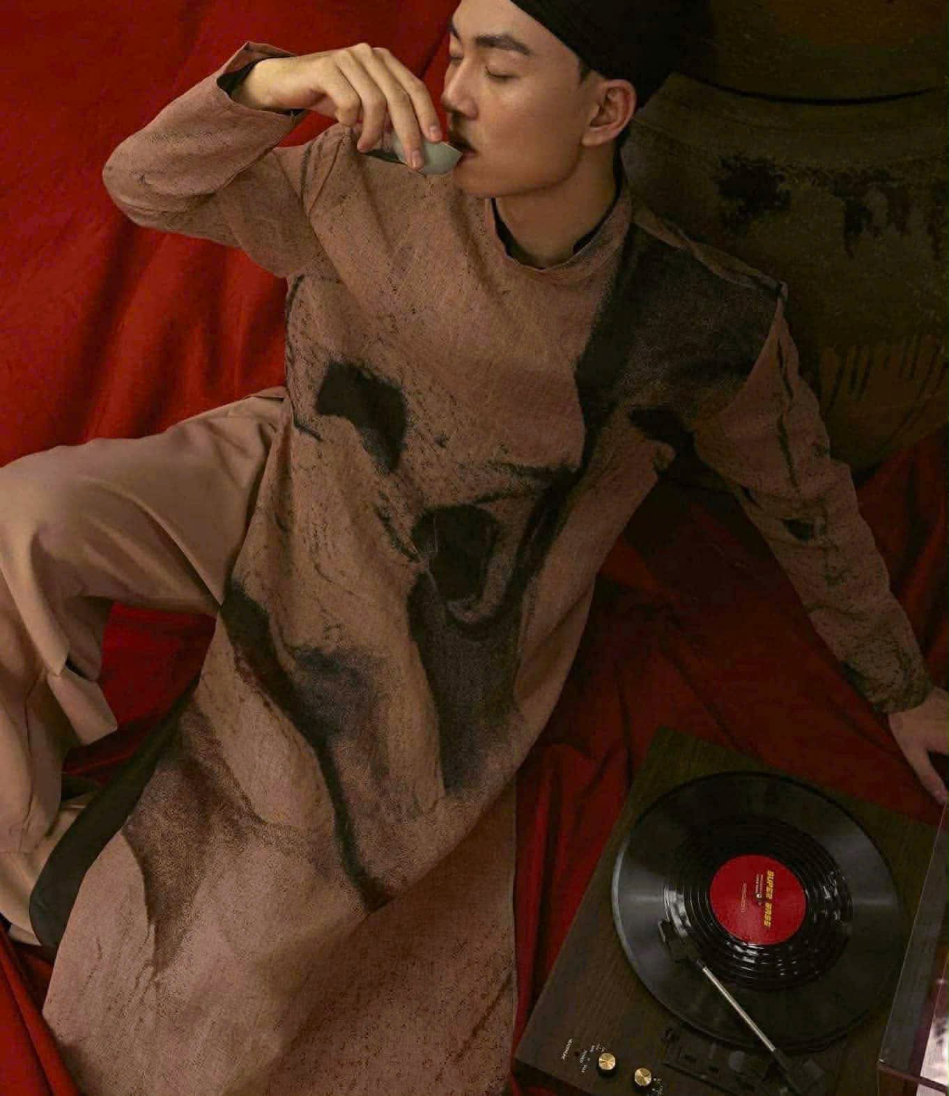 Cho Thuê Áo Dài Nam Nâu Đen Magnus Voan 2 Lớp L