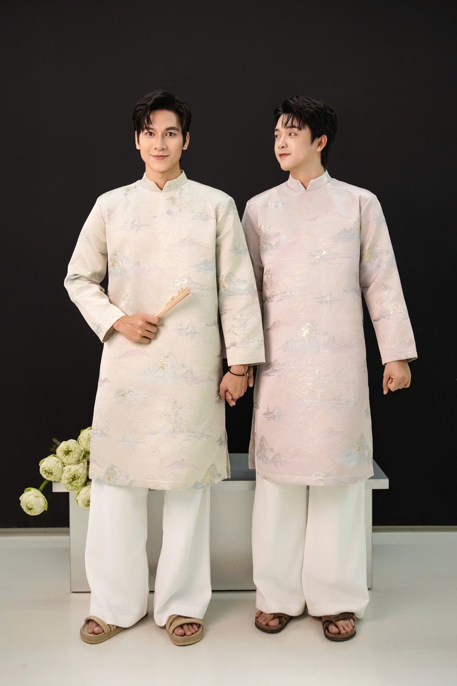 Tôn vinh vẻ đẹp truyền thống với Áo Dài Nam OAO Vải Gấm Hoạ Tiết Núi Non Hồng, thiết kế tinh tế, chất liệu cao cấp, dành cho quý ông lịch lãm.