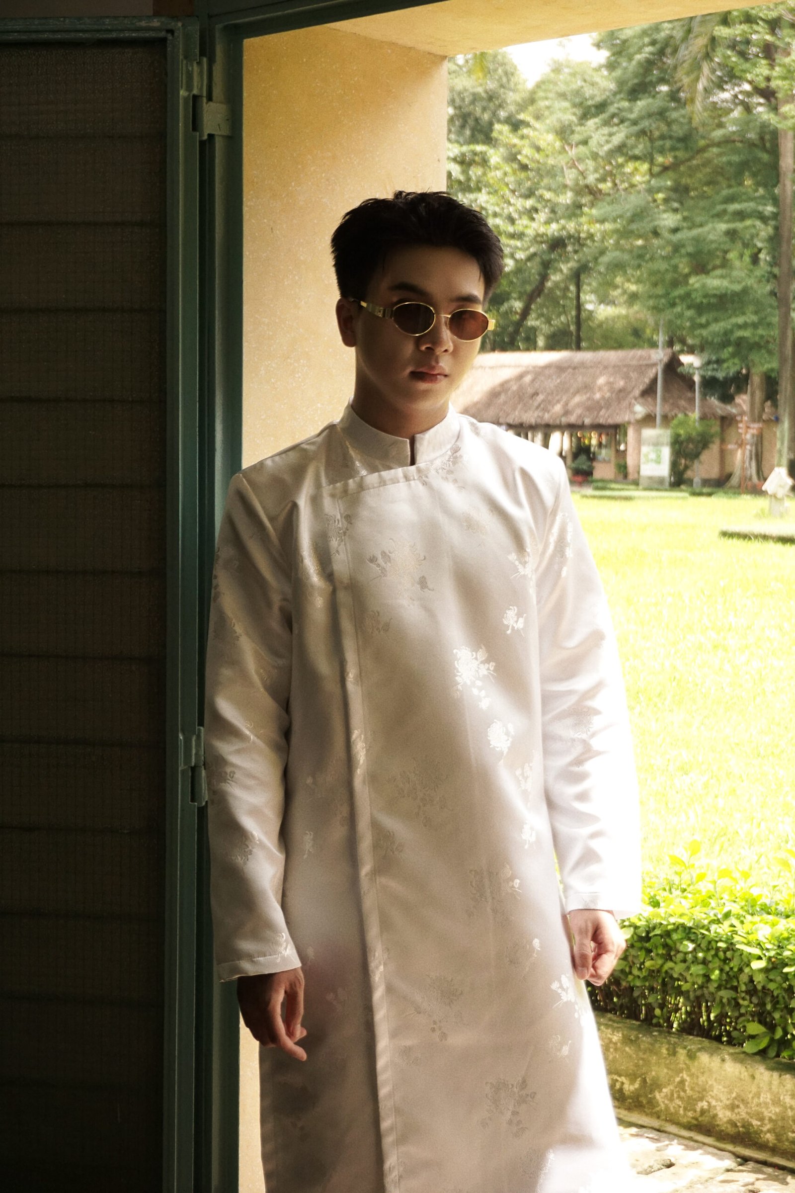Cho Thuê Áo Dài Nam Trắng Cúc Đại Đoá Jacob Studio