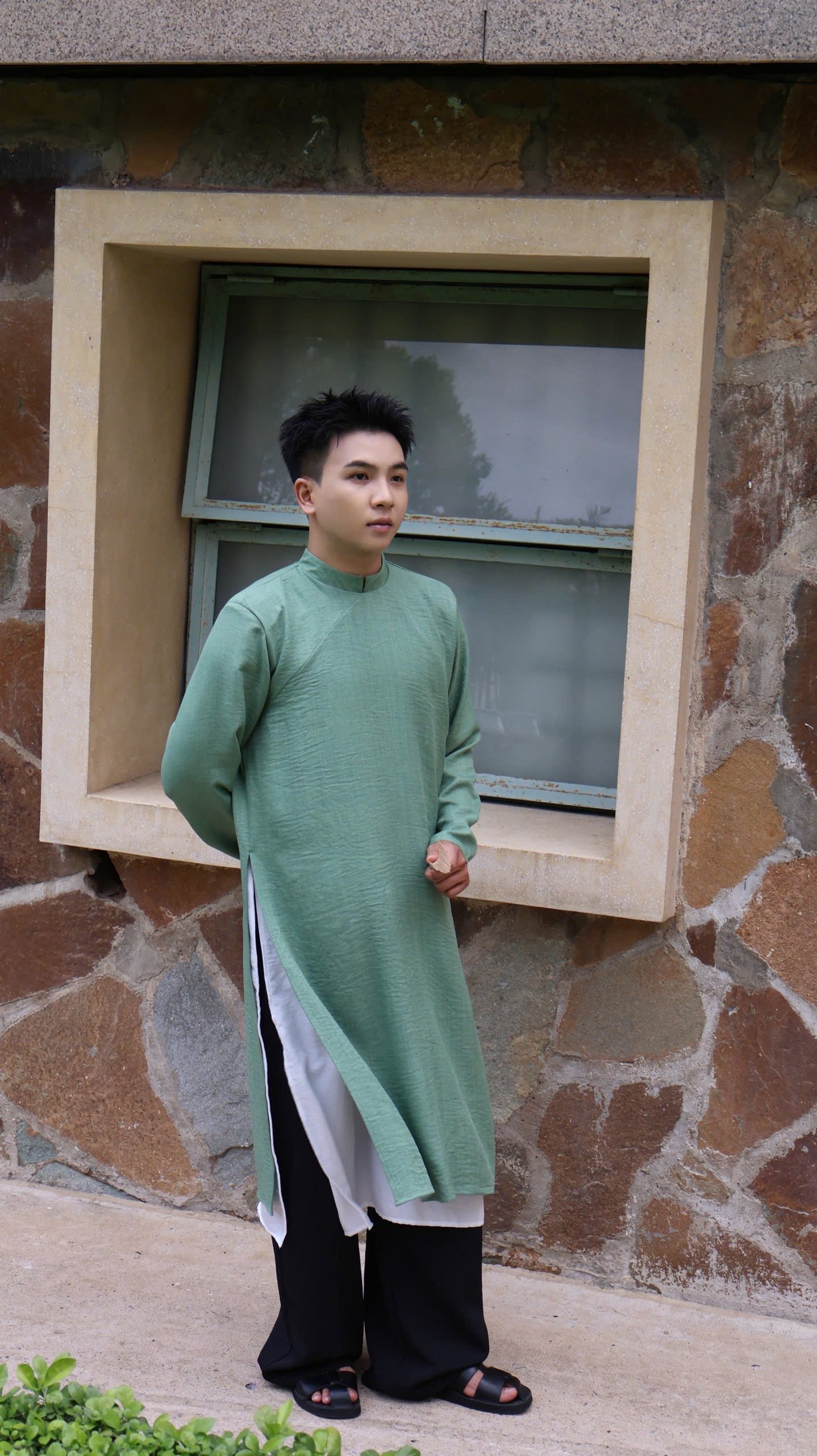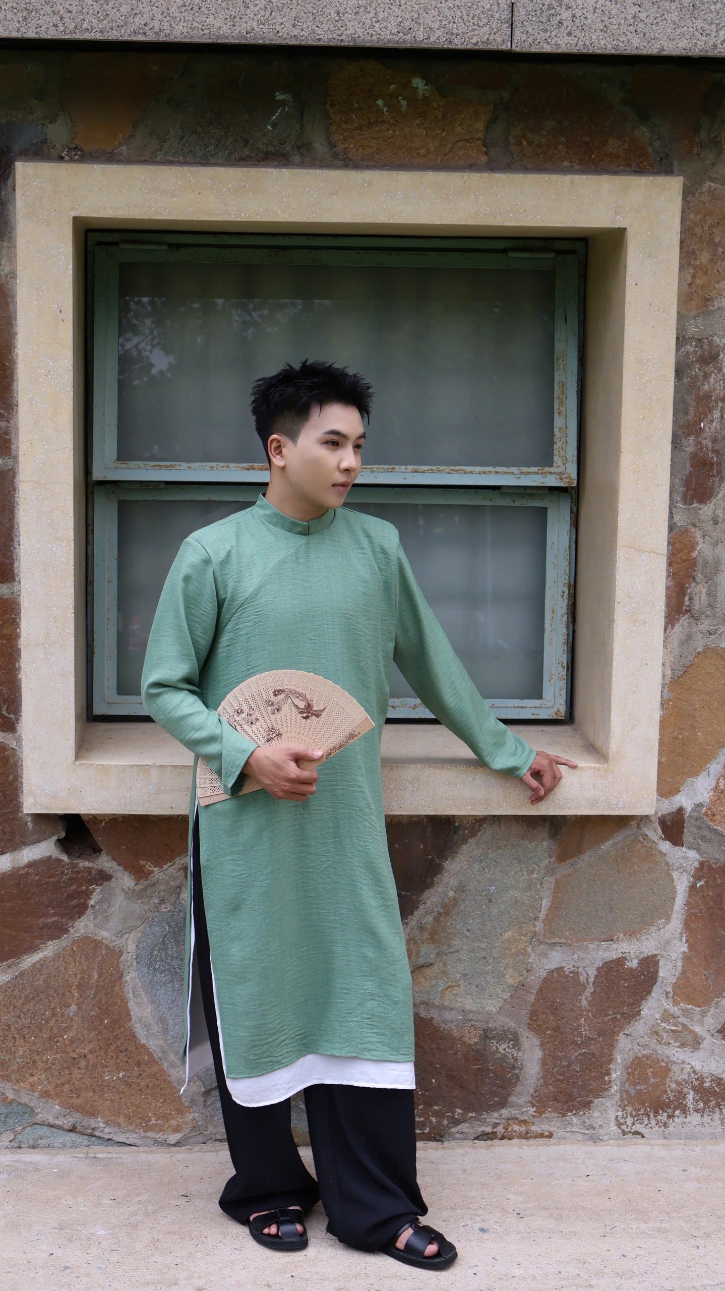 Cho Thuê Áo Dài Nam Xanh Đũi Vân Mây 2 Lớp Jacob Studio