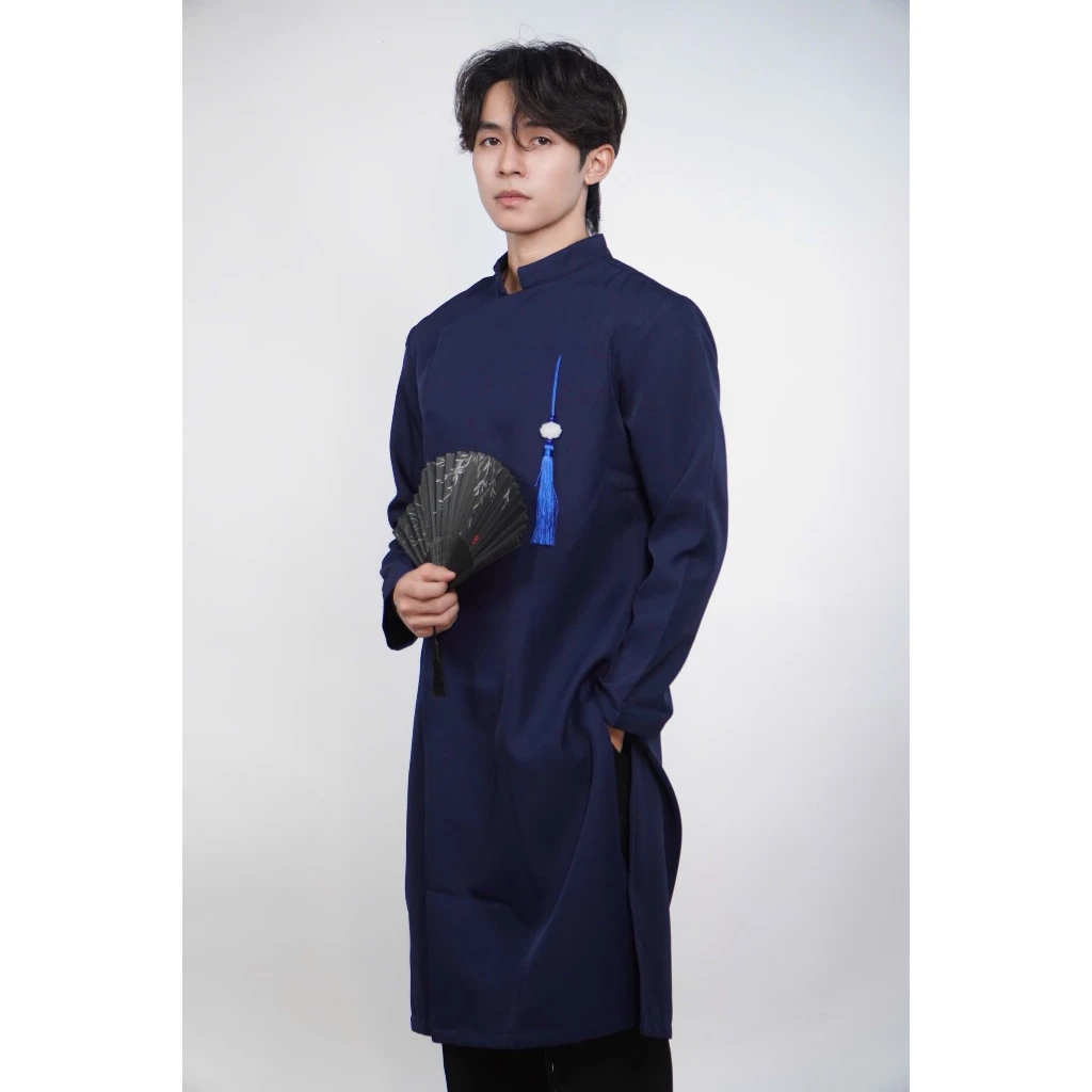 Cho Thuê Áo Dài Nam Xanh Dương Cúc Bấm