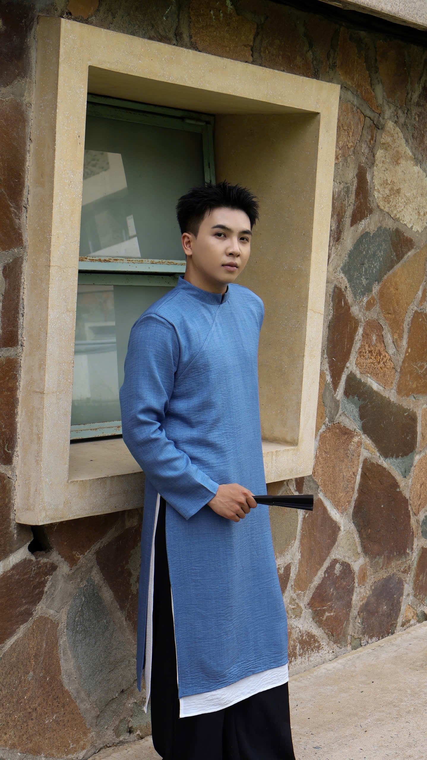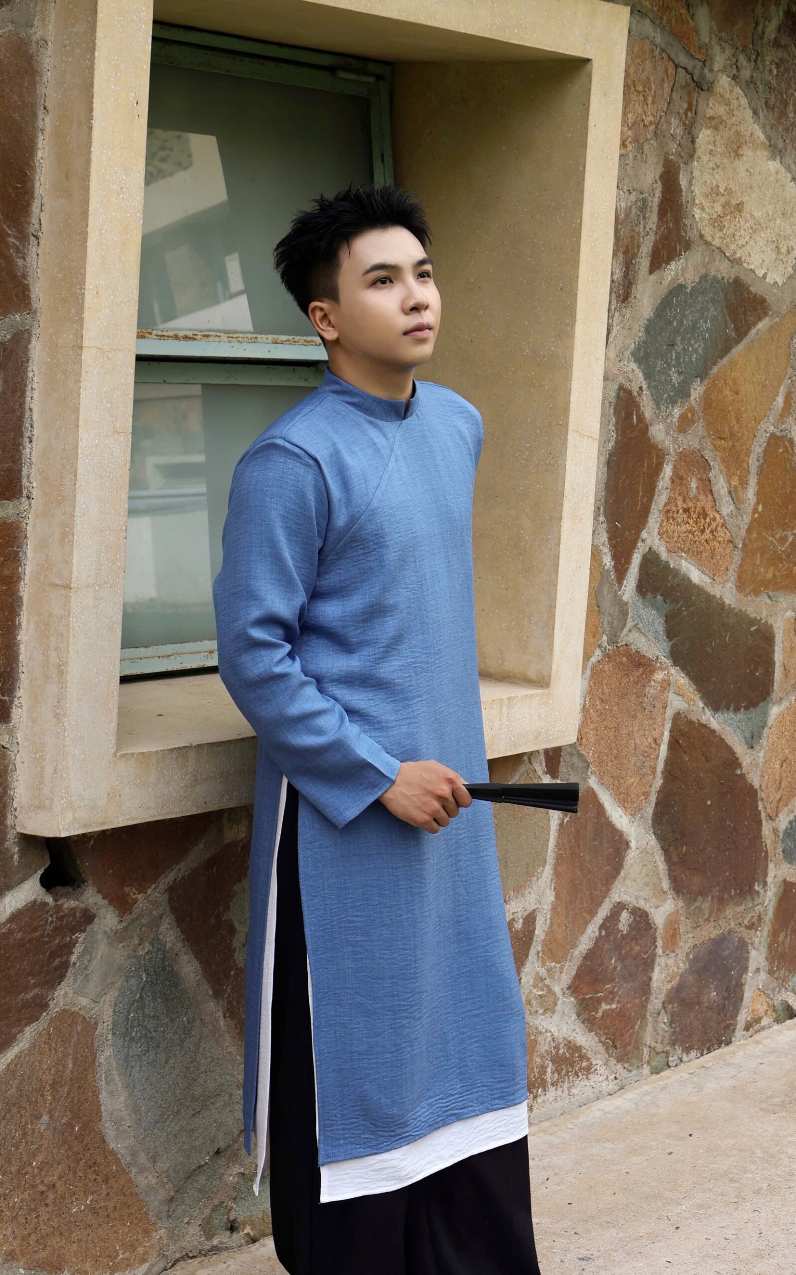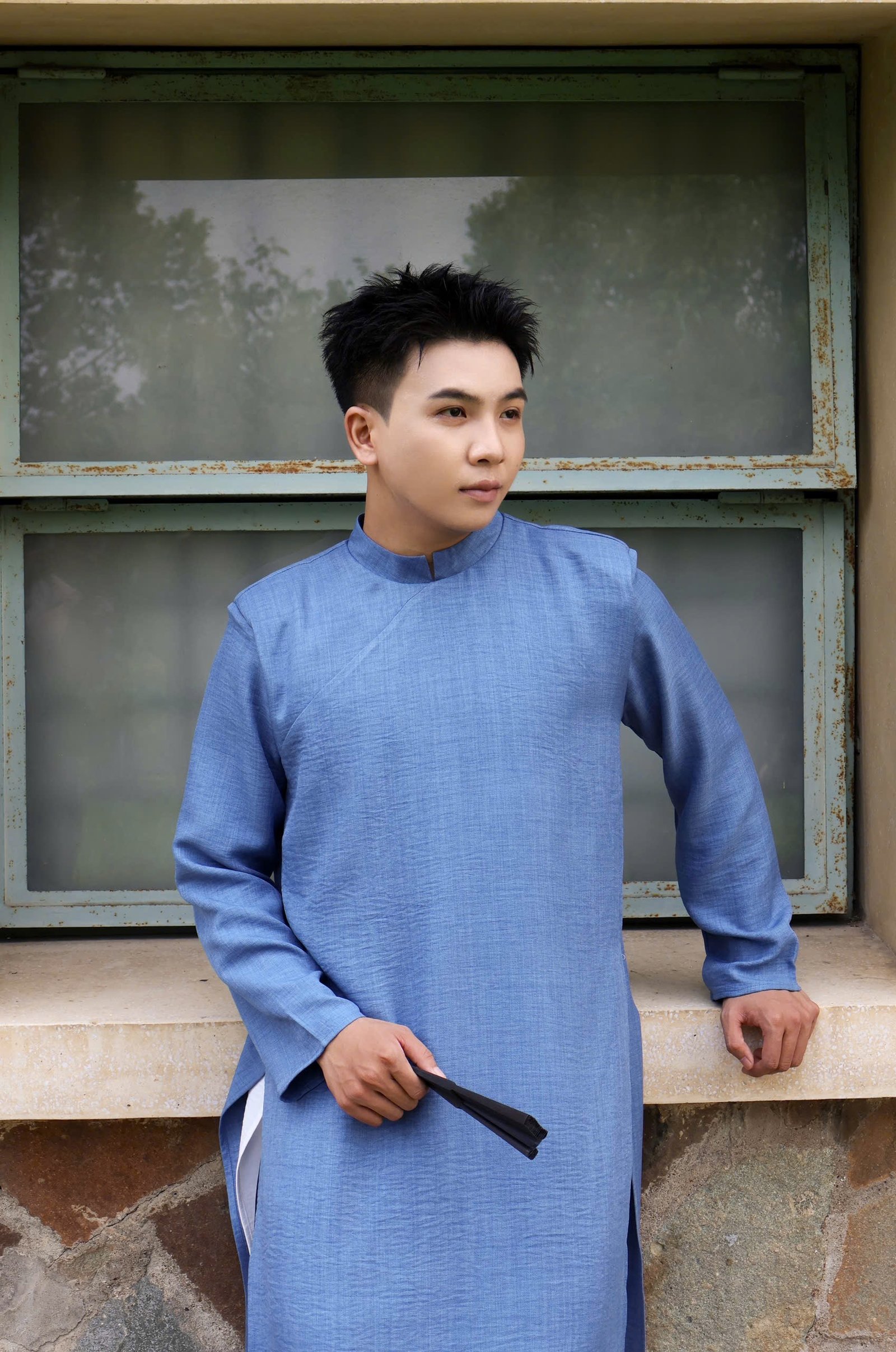Cho Thuê Áo Dài Nam Xanh Dương Đũi Vân Mây 2 Lớp Jacob Studio