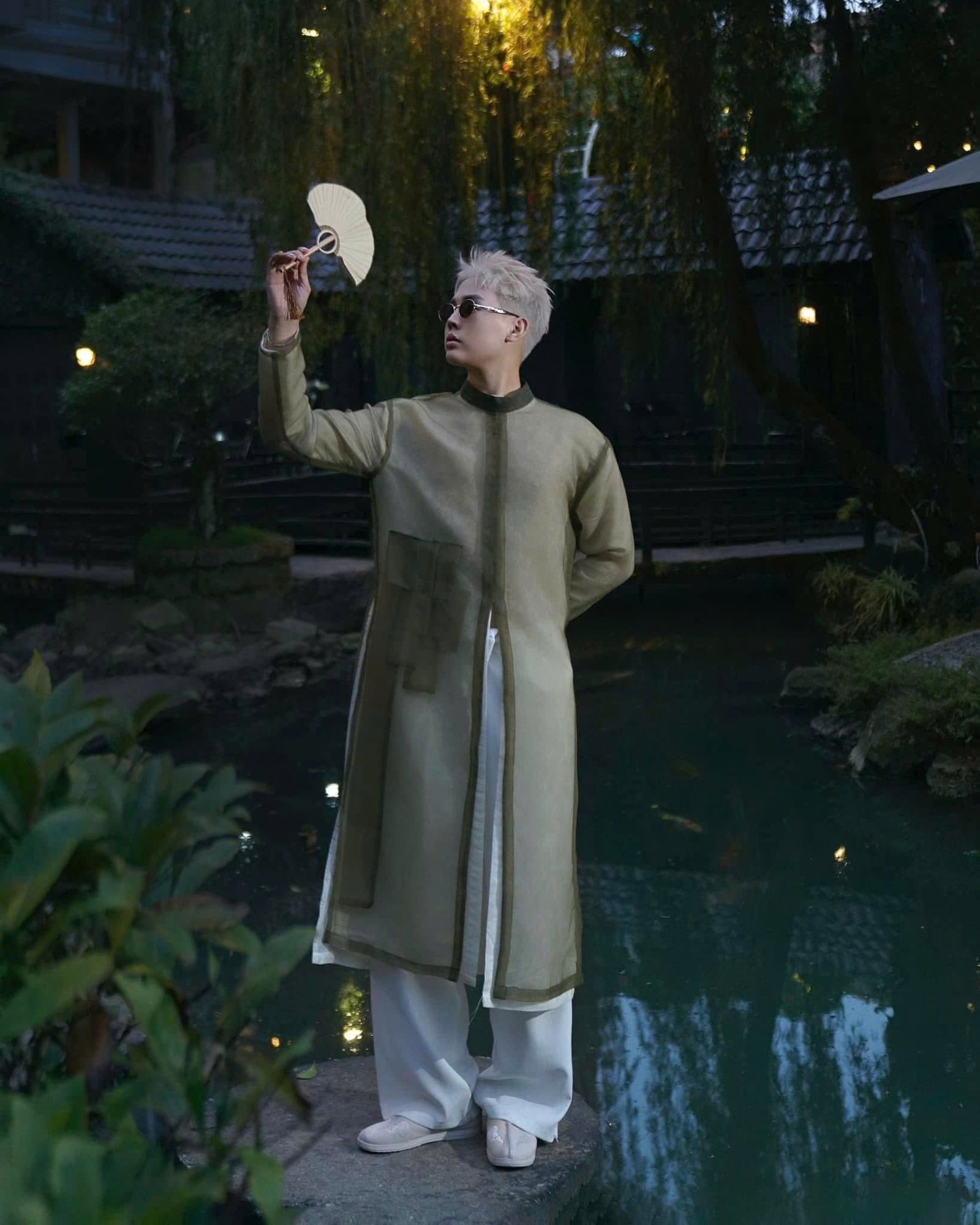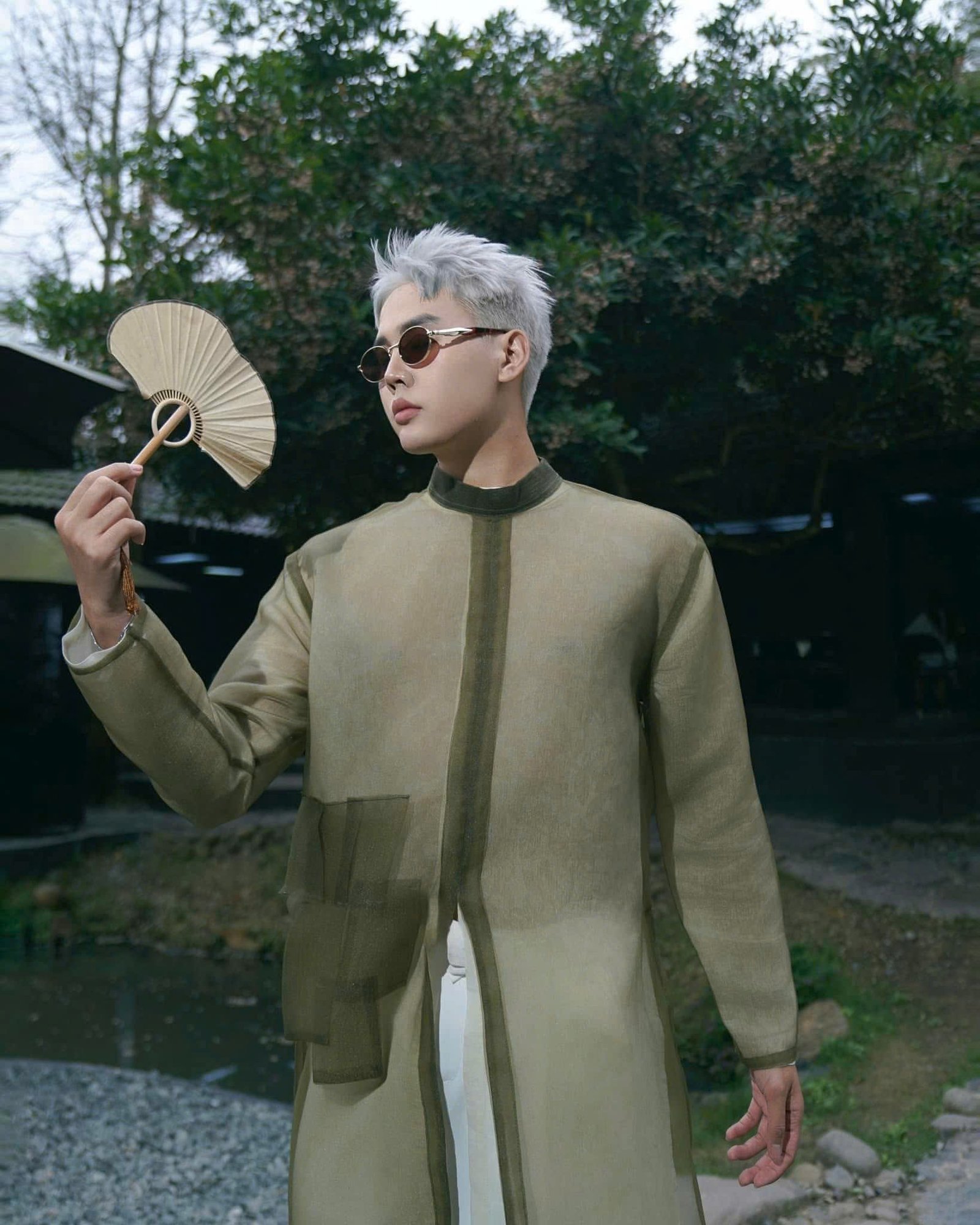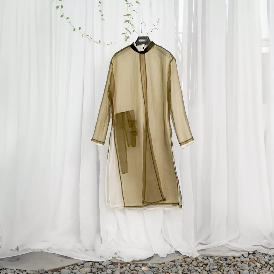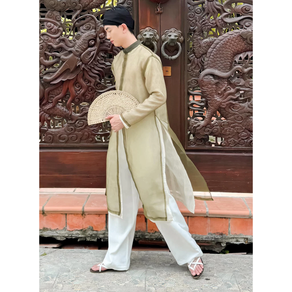 Cho Thuê Áo Dài Nam Xanh Rêu Magnus Voan 2 Lớp