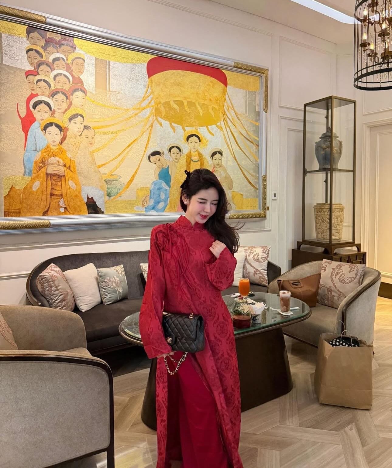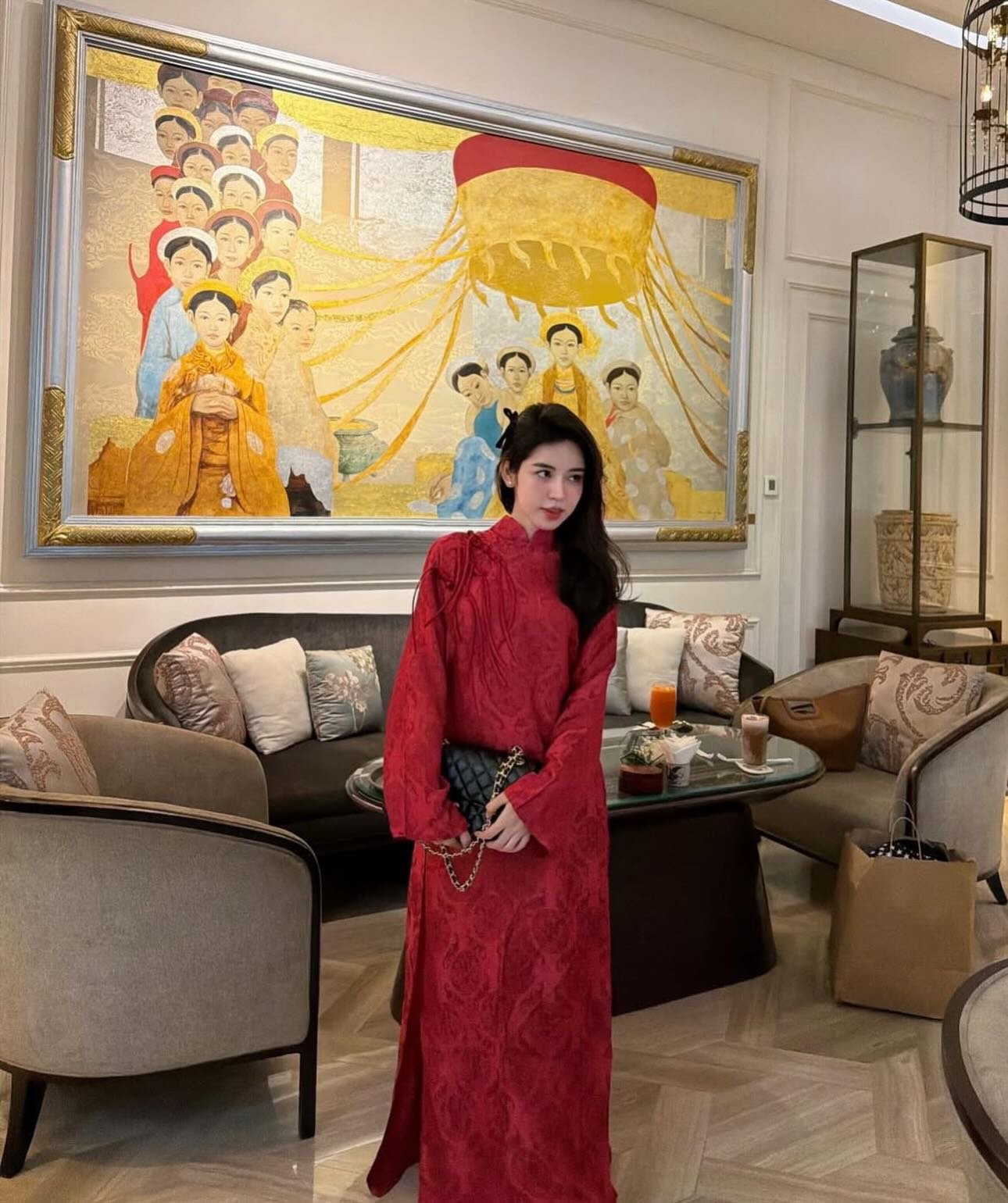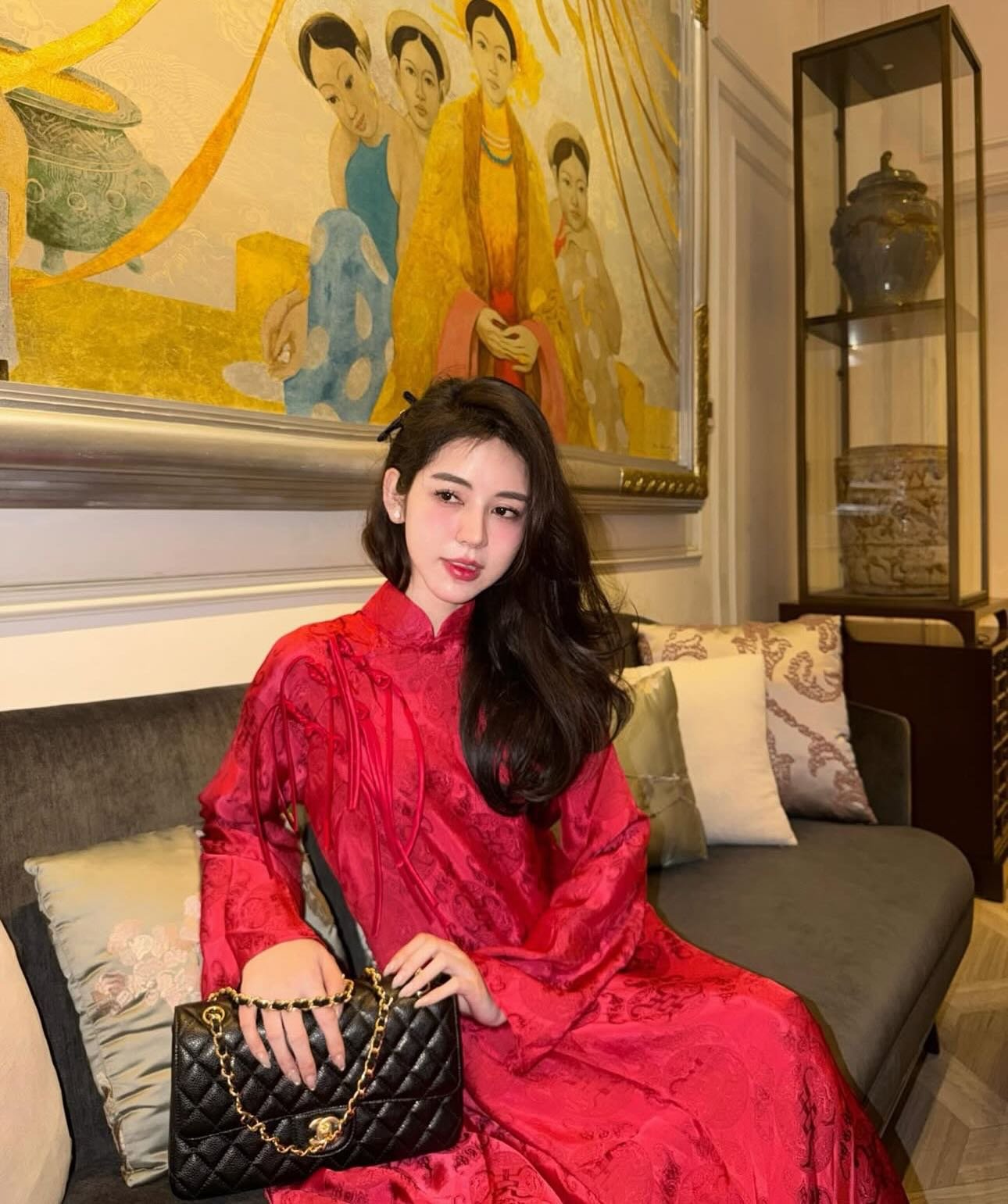 Thuê Áo Dài Nữ Đỏ Cổ Trụ Đồng Tiền Đính 3 Khảm Ngọc Trai tại Tiệm Nhà Bông là lựa chọn lý tưởng cho những ai yêu thích áo dài đỏ sang trọng, nổi bật và mang ý nghĩa tốt đẹp.