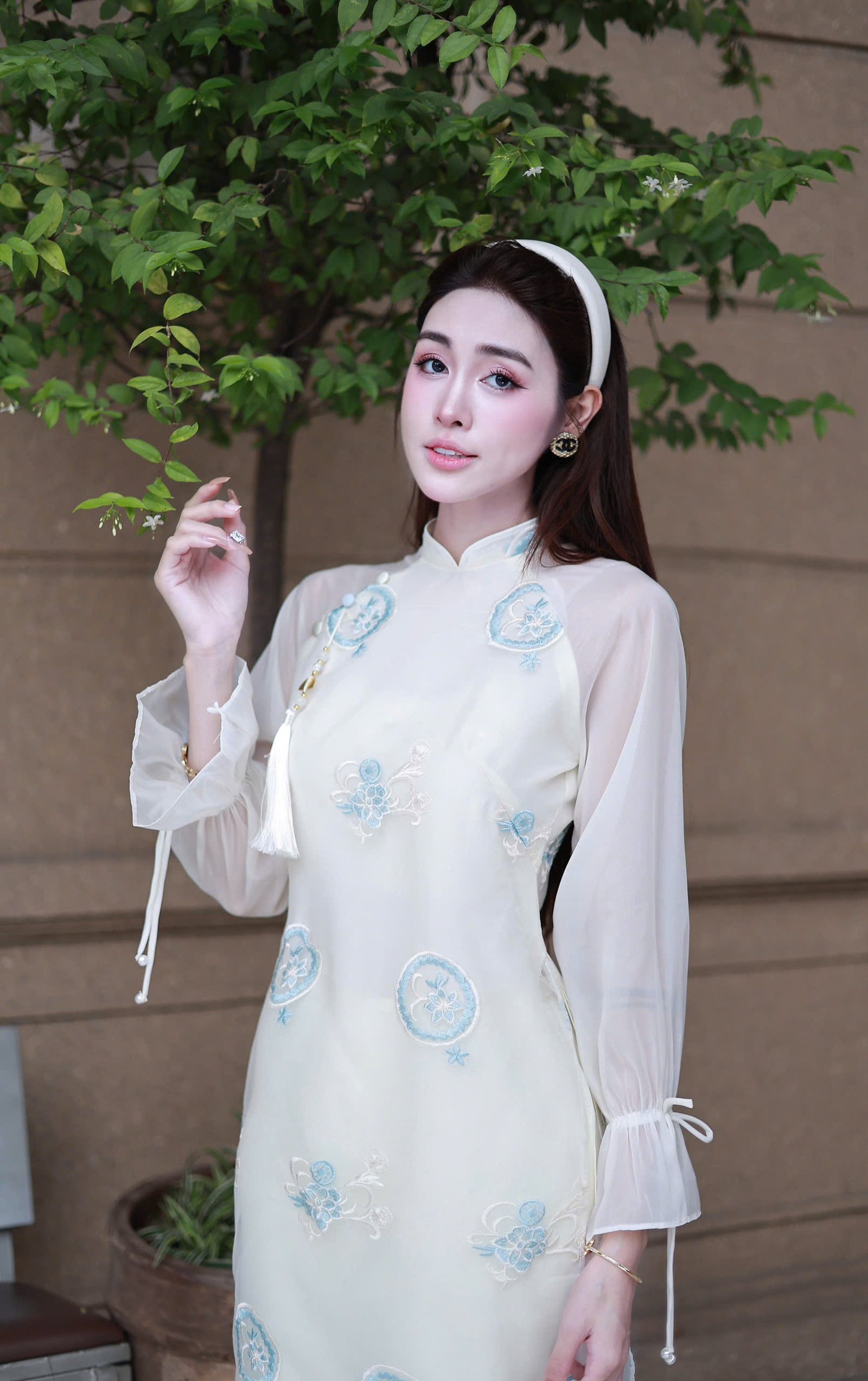 Thuê Áo Dài Nữ Trắng Thêu Hoa Xanh Tay Bồng tại Tiệm Nhà Bông là lựa chọn lý tưởng cho những ai yêu thích phong cách nhẹ nhàng, nữ tính và tinh tế.
