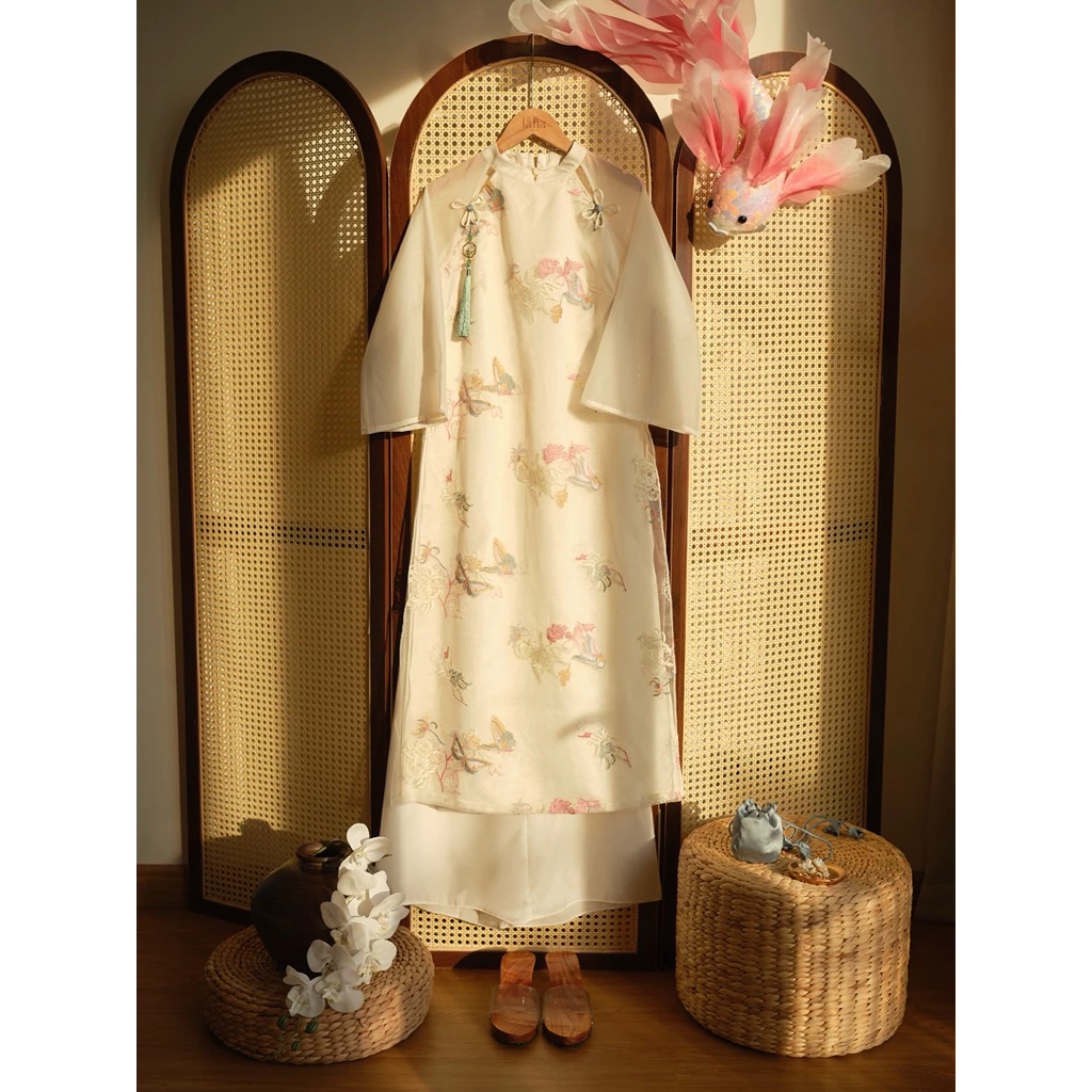 - Áo Dài Hoa Nổi Nhụy Vàng Hồng là một mẫu áo dài truyền thống đẹp và ấn tượng, được thiết kế với phần tà áo dài đến đầu gối, tay áo lửng và cổ trụ. Họa tiết hoa nổi nhụy vàng được đính trên nền vải màu hồng tạo nên sự tinh tế và nữ tính cho người mặc. Mẫu áo dài này phù hợp cho các cô nàng trẻ tuổi, có thể diện vào các dịp lễ tết, chụp ảnh kỷ yếu, tham dự tiệc cưới hay du xuân.