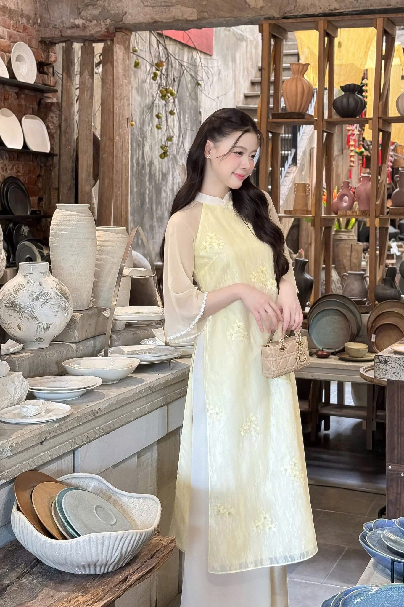 Áo Dài Tơ Thêu Mỹ Hoa Vàng Kem là sự kết hợp tinh tế giữa chất liệu tơ mềm mại và nghệ thuật thêu tay truyền thống. Màu vàng kem dịu nhẹ mang đến vẻ đẹp thanh lịch, trang nhã, phù hợp với nhiều dịp đặc biệt. Họa tiết hoa thêu tỉ mỉ tạo điểm nhấn duyên dáng, tôn lên nét nữ tính và sự tinh xảo trong từng đường kim mũi chỉ. Đây là lựa chọn lý tưởng cho người yêu thích vẻ đẹp cổ điển pha lẫn hiện đại.