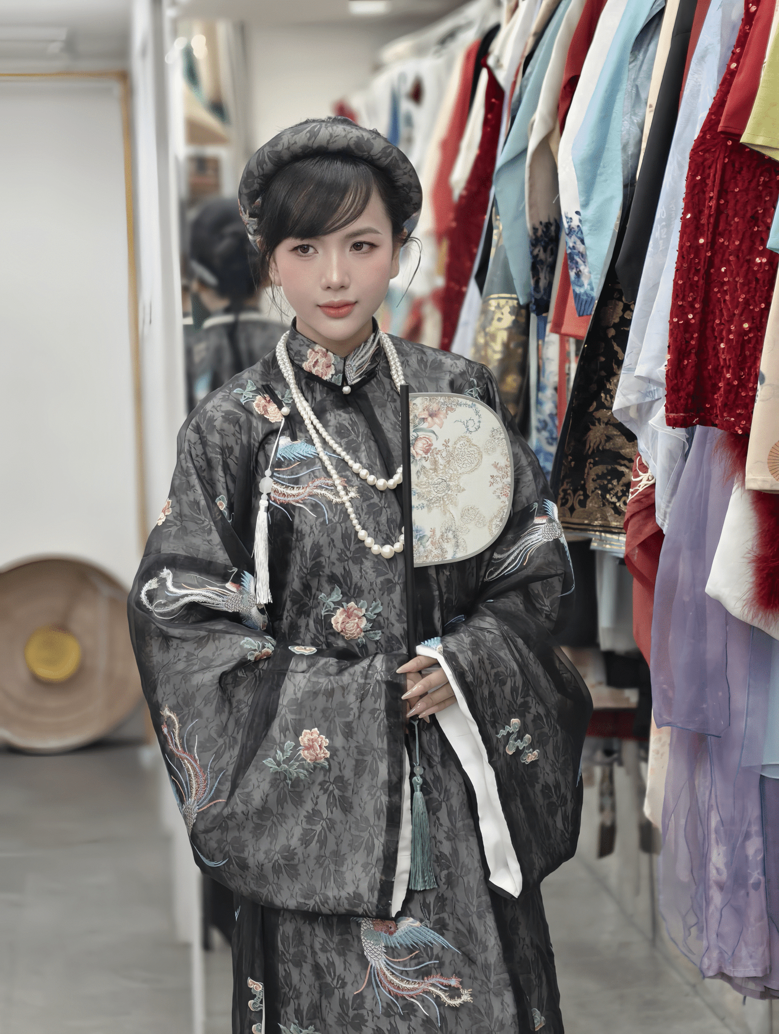 Cho Thuê Áo Tất Đen Voan Long Phụng