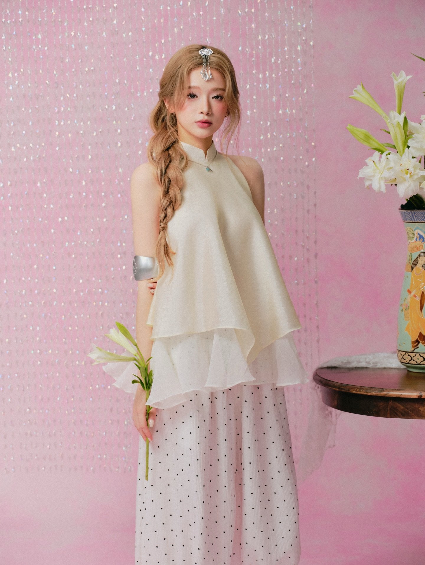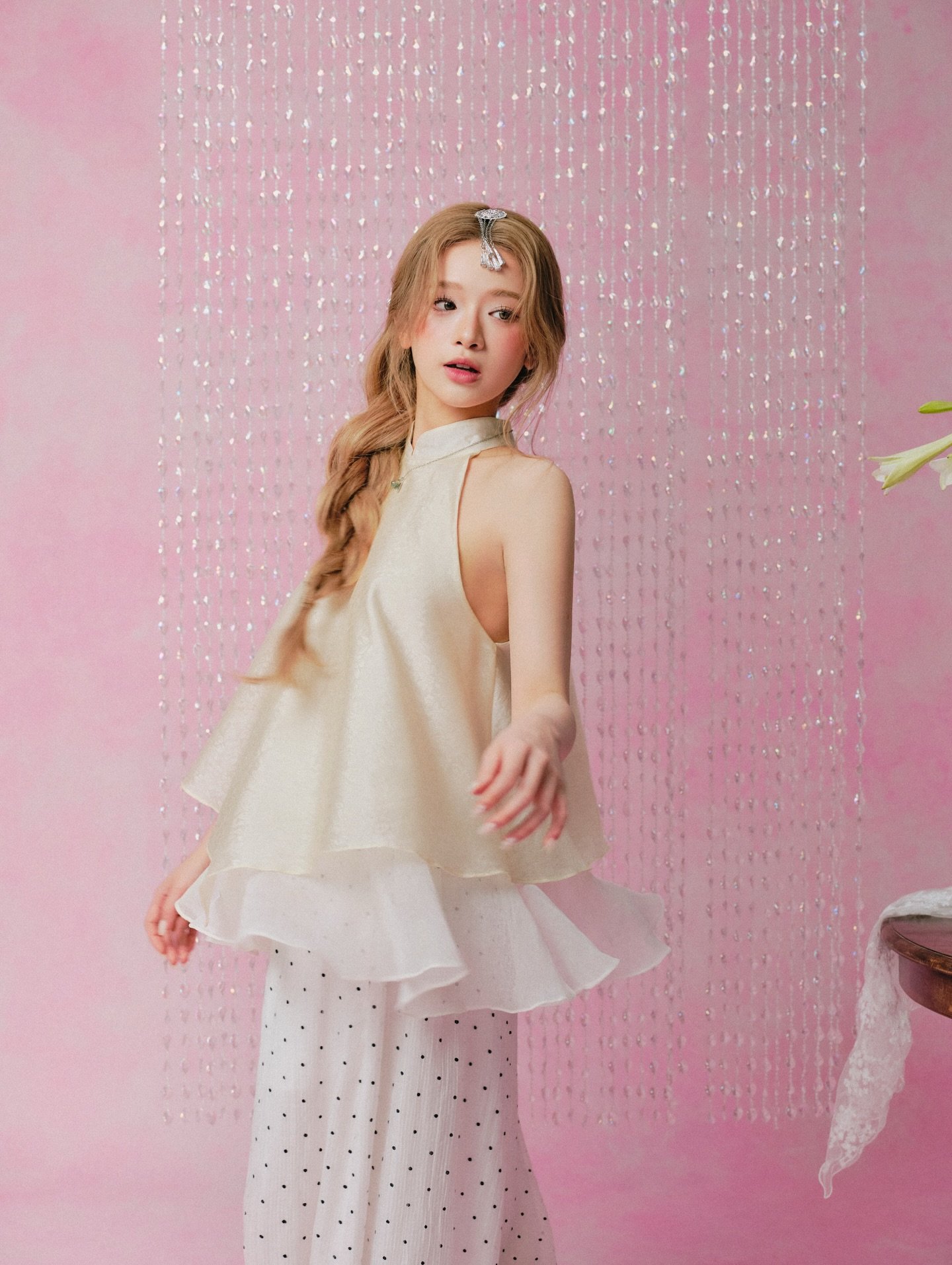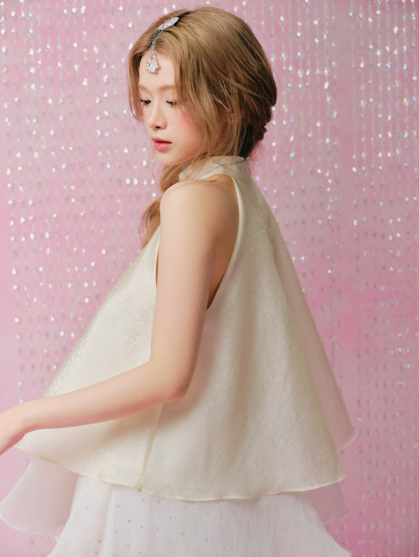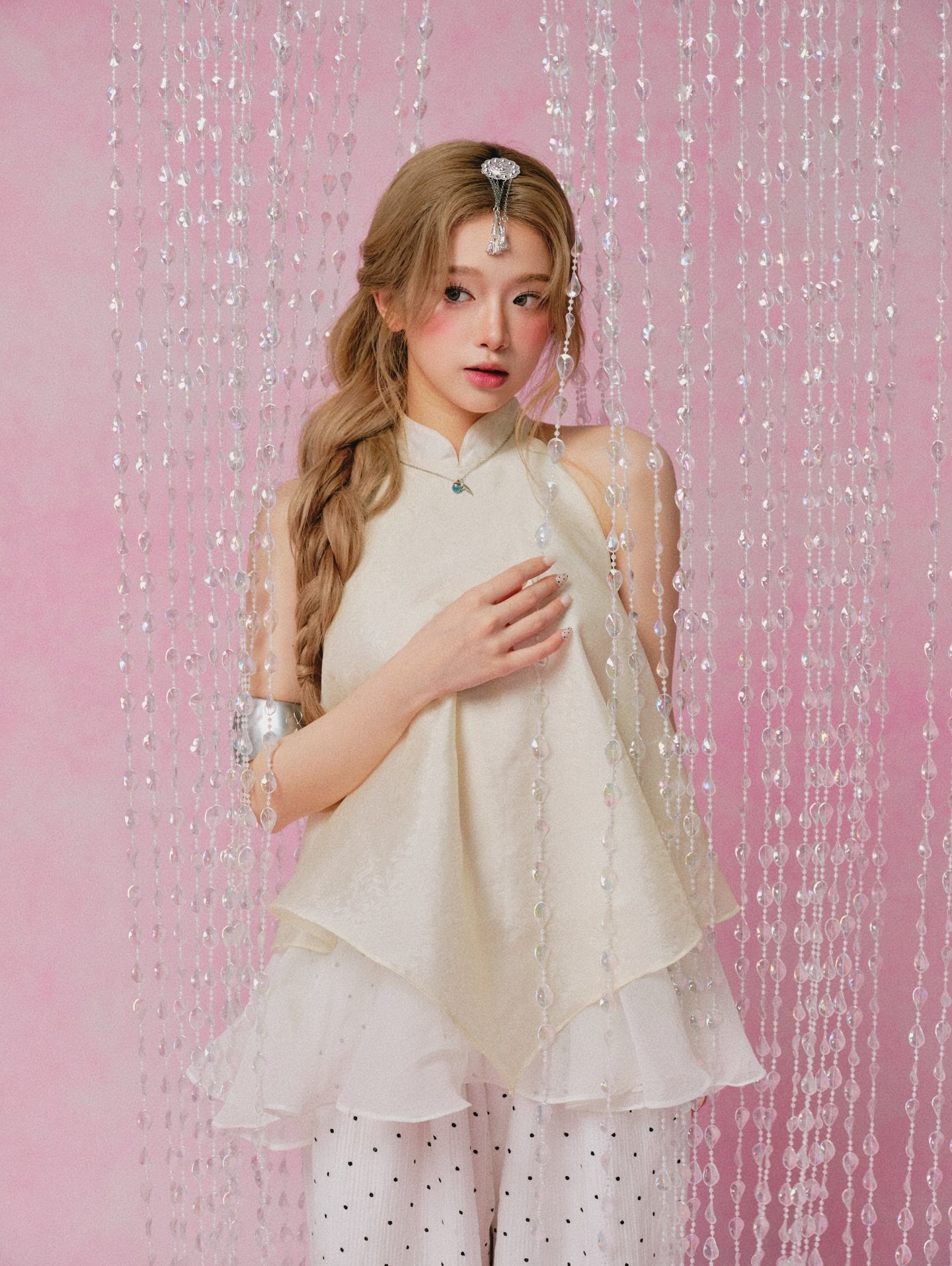 Áo Yếm Du Vân Kem (Remmus) mang vẻ đẹp dịu dàng, tinh tế với gam màu kem nhã nhặn và chất liệu Remmus mềm mại. Thiết kế yếm ôm nhẹ phần thân trên, tạo cảm giác thanh thoát và nữ tính.
