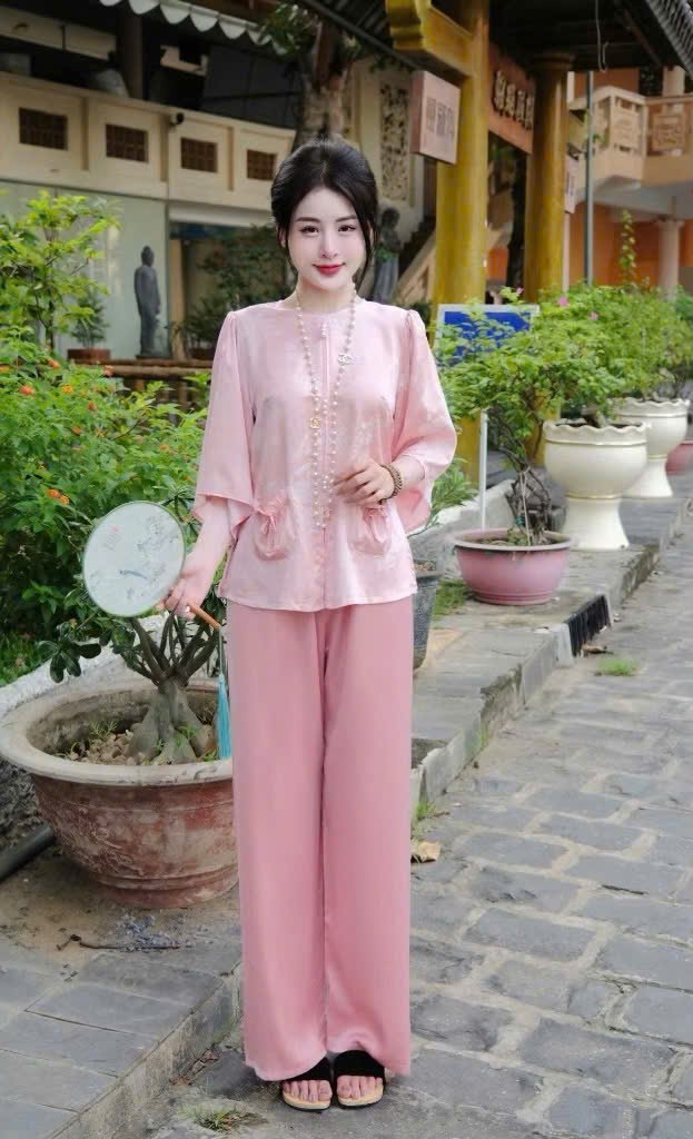 Set Pháp Phục Túi Tiền Hồng là bộ trang phục truyền thống dành cho Phật tử nữ. Với tone màu hồng mang vẻ đẹp thanh khiết, trang nhã. Chất liệu vải mềm mại, thoáng khí giúp người mặc thoải mái trong các hoạt động lễ chùa hay thiền định. Đây là lựa chọn lý tưởng cho những ai muốn thể hiện sự tôn kính và tinh tế trong phong cách Phật giáo