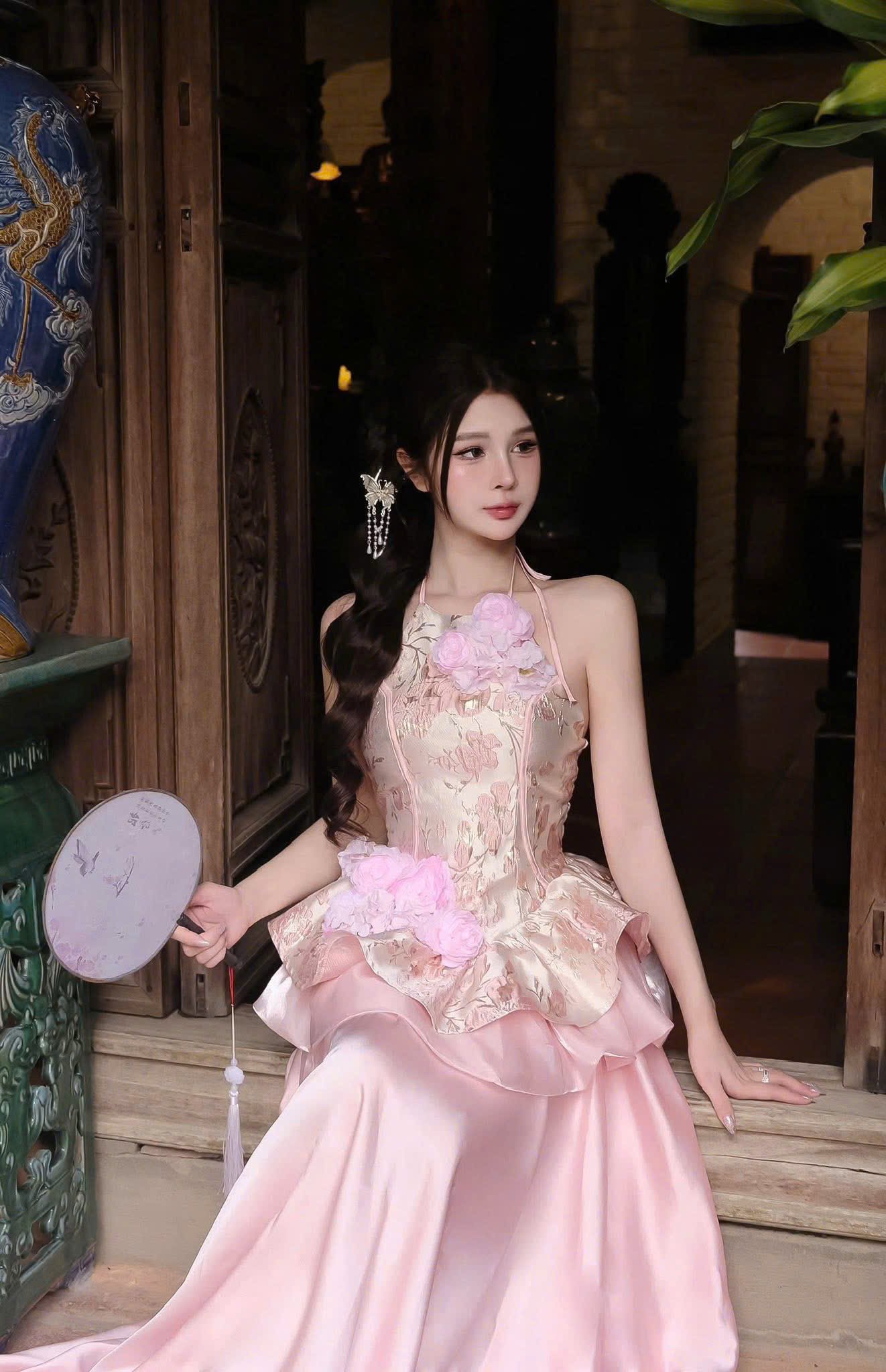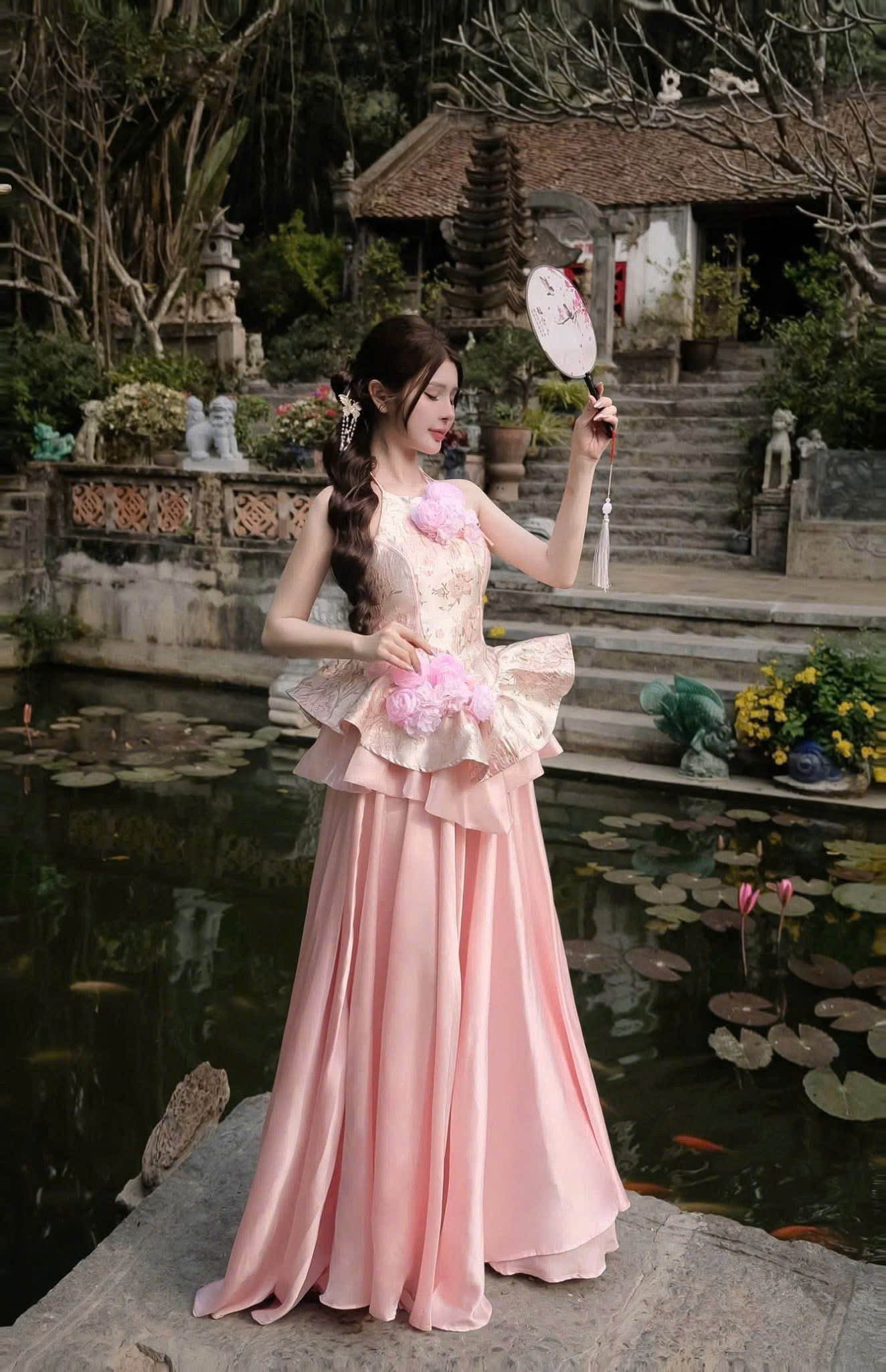 Cho Thuê Set Yếm Hoa Chân Váy Lụa N.E.P Hồng