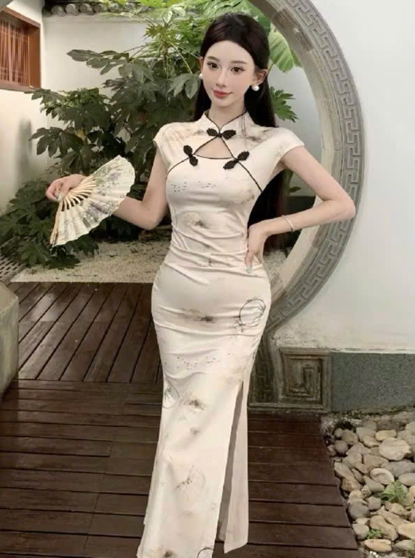Sườn Xám Thuỷ Mặc Xanh 3 Nút Tàu Kem là thiết kế thanh lịch với gam màu kem trang nhã làm nền. Áo nổi bật với họa tiết thủy mặc sắc xanh mềm mại, tạo điểm nhấn nghệ thuật đầy tinh tế. Ba nút tàu đen nơi cổ áo mang hơi hướng cổ điển, hài hòa với tổng thể hiện đại. Kiểu dáng ôm sát và đường xẻ cao giúp tôn dáng, phù hợp cho những dịp đặc biệt cần sự nổi bật và duyên dáng.