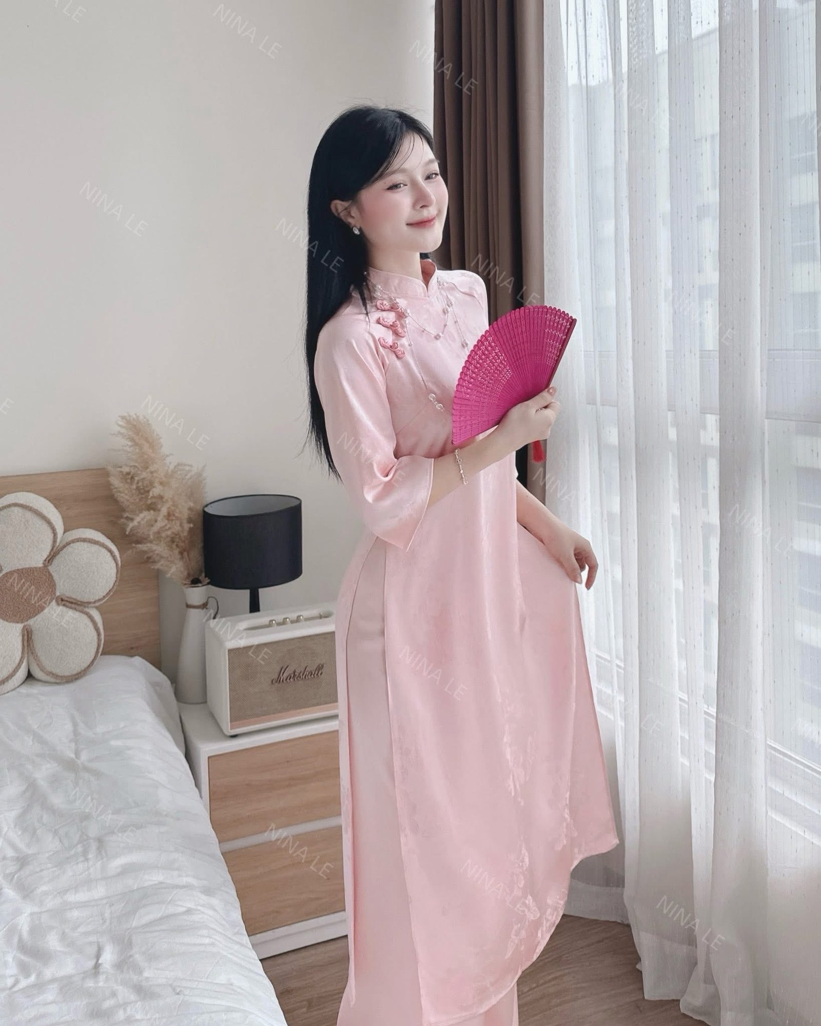 - Áo Dài Hoa Nổi Nhụy Vàng Hồng là một mẫu áo dài truyền thống đẹp và ấn tượng, được thiết kế với phần tà áo dài đến đầu gối, tay áo lửng và cổ trụ. Họa tiết hoa nổi nhụy vàng được đính trên nền vải màu hồng tạo nên sự tinh tế và nữ tính cho người mặc. Mẫu áo dài này phù hợp cho các cô nàng trẻ tuổi, có thể diện vào các dịp lễ tết, chụp ảnh kỷ yếu, tham dự tiệc cưới hay du xuân.